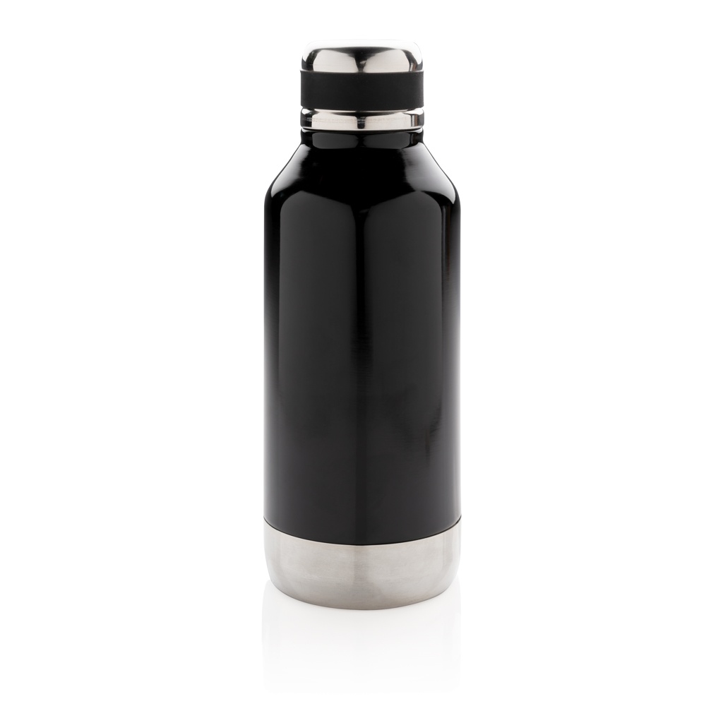Auslaufsichere Vakuumflasche mit Logoplatte, Schwarz