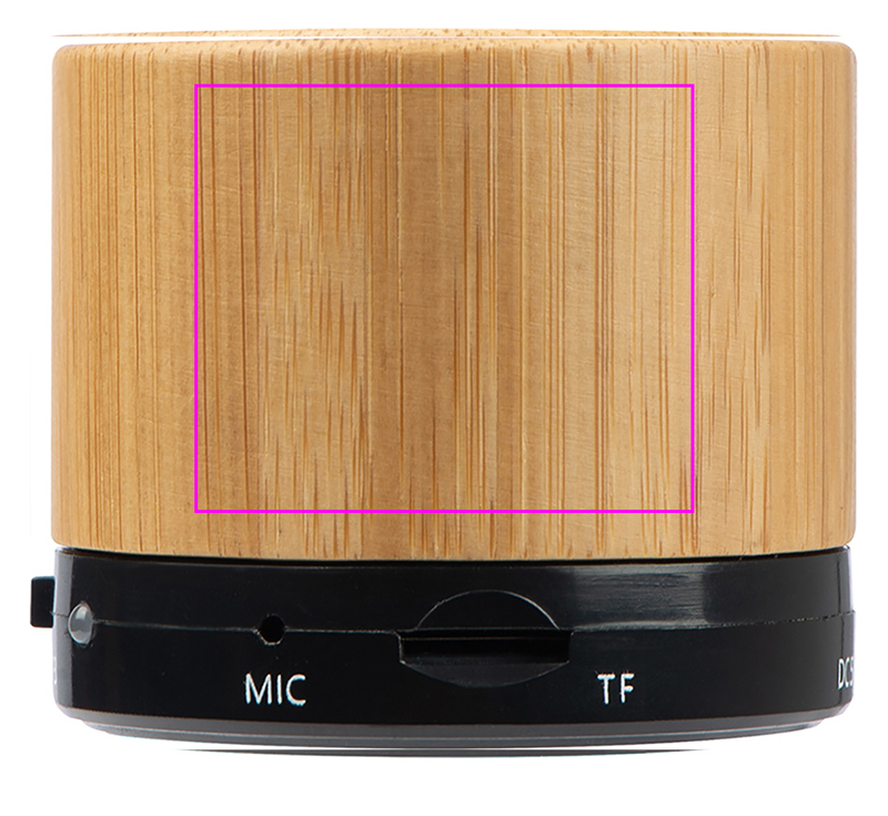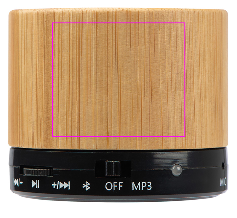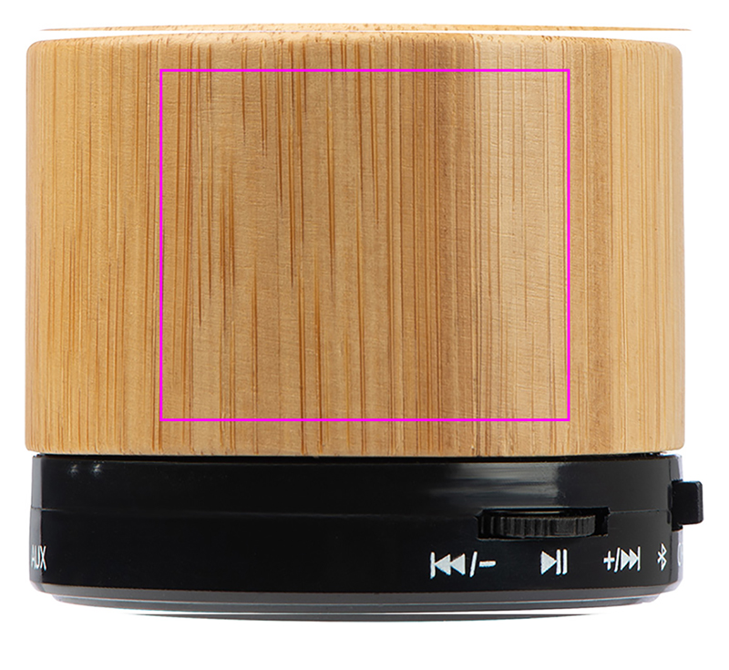 Stylischer Bluetooth-Lautsprecher im Bambusgehäuse inkl. USB-Ladekabel. Weitere Features: Micro SD-Kartenslot zum Abspielen von MP3-Dateien, AUX-Anschluss. Akkulaufzeit ca. 40-70 Minuten. Ihr Logo lasern wir auf das Gehäuse.