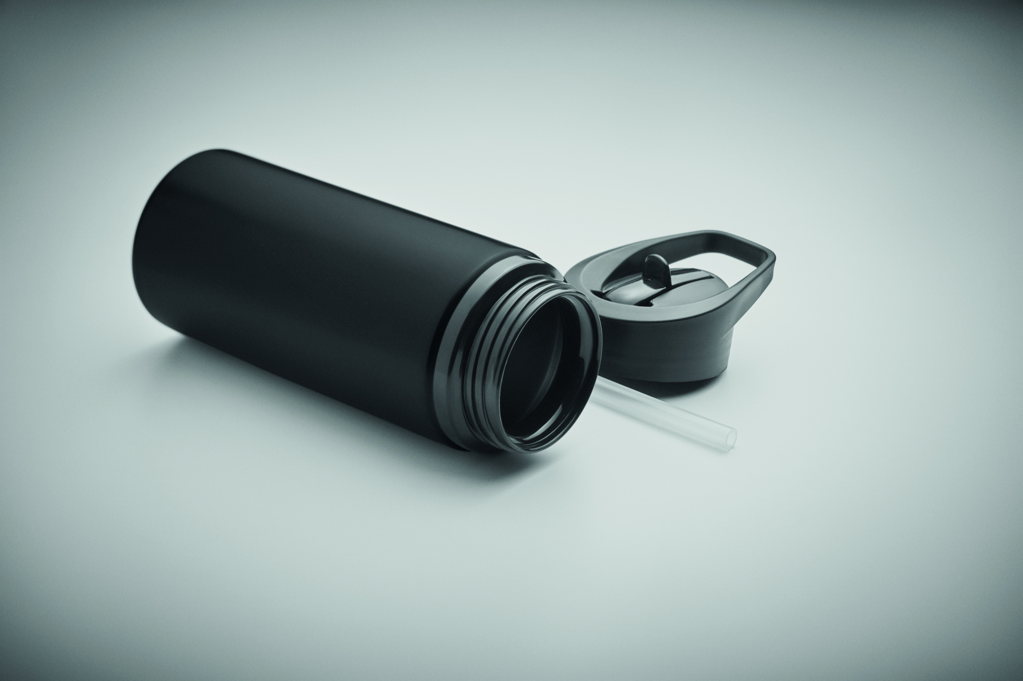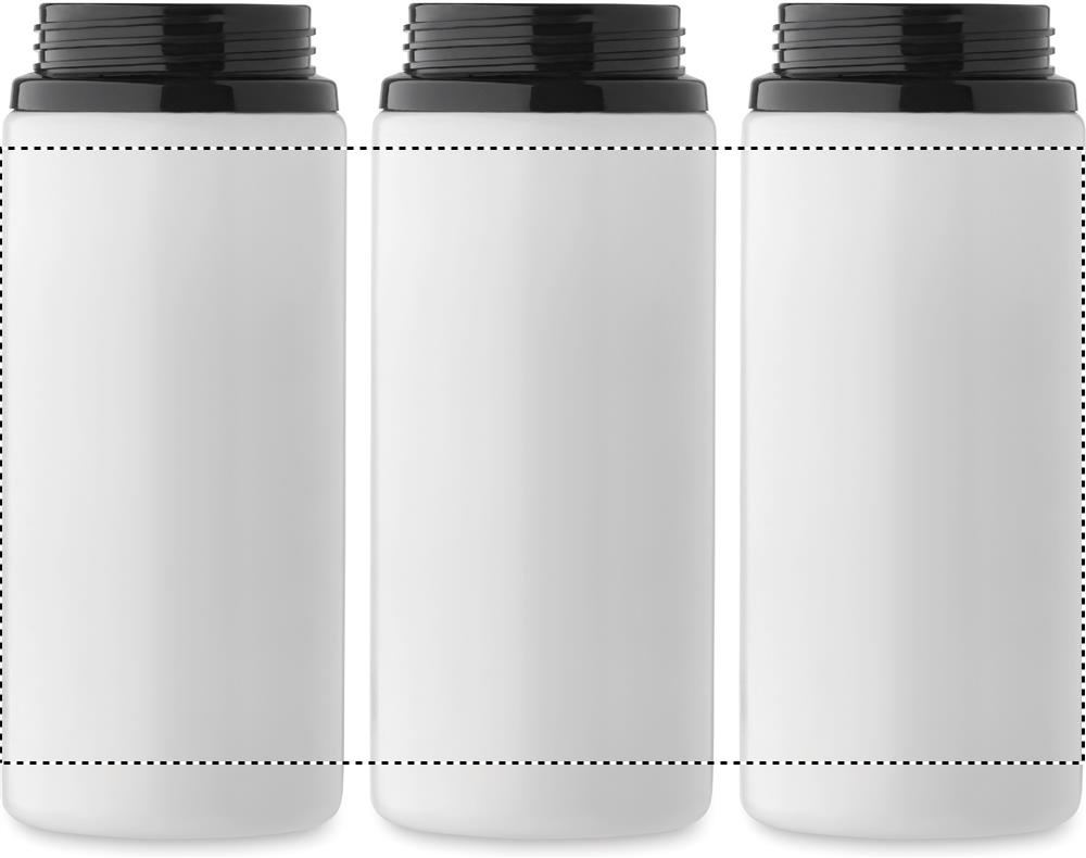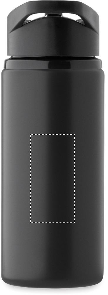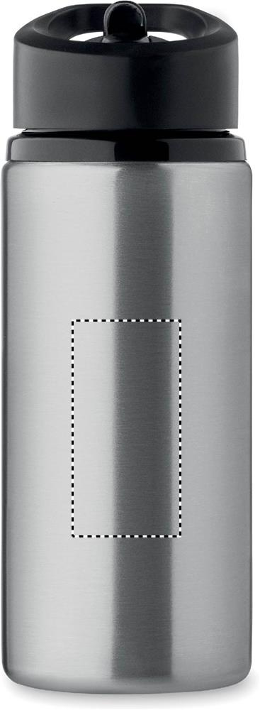 Einwandige Flasche aus recyceltem Edelstahl (90% recycelter Edelstahl und 10% Edelstahl). Klappbares Mundstück, Trinkhalm und Deckel mit Griff. Füllmenge: 500 ml.