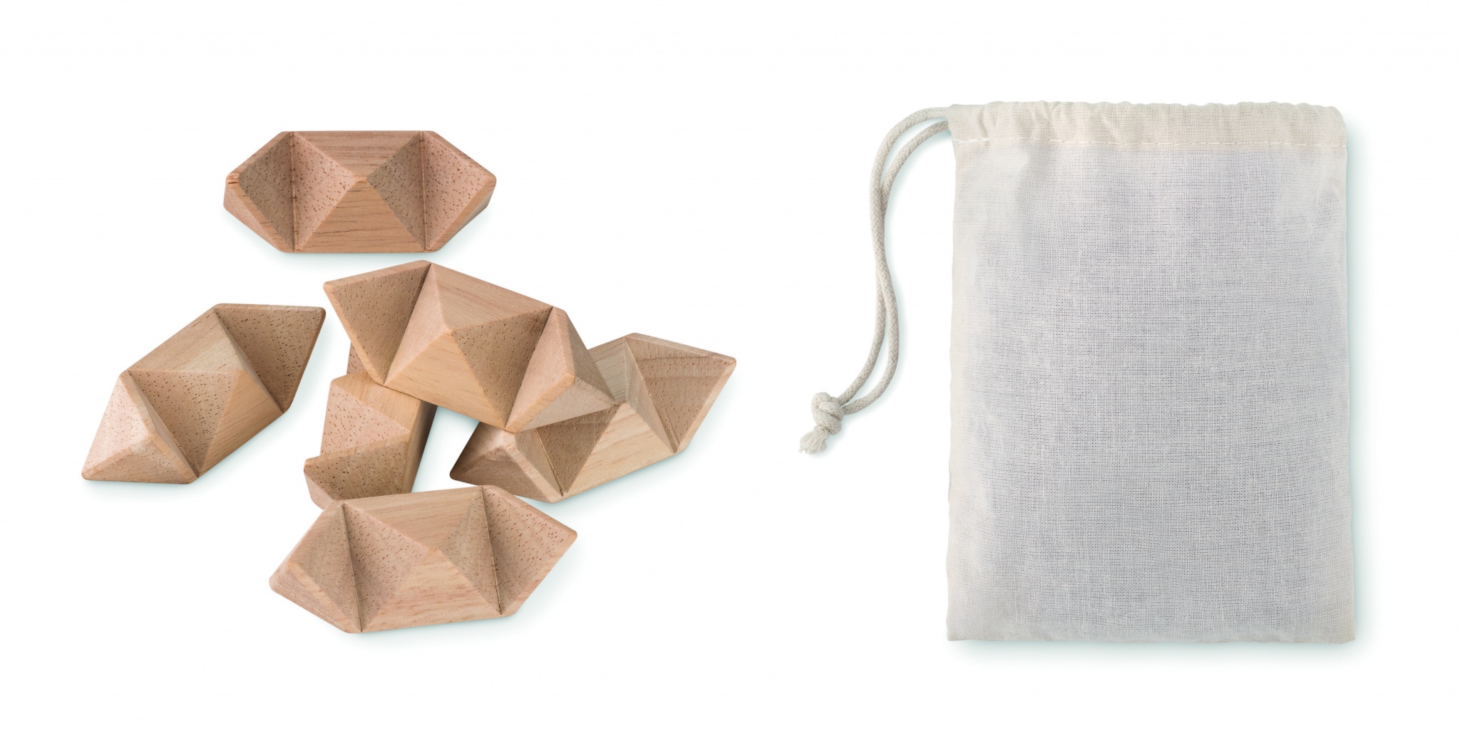 Geduldsspiel aus Holz in Sternform. Lieferung in einem Baumwollbeutel.