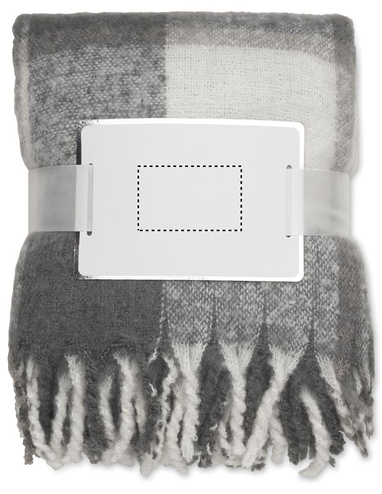 Mohair-RPET Polyester Decke mit Karomuster und Hand-gerollten Fransen. Inkl. Band mit bedruckbarer Karte.