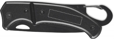 Klappmesser aus Aluminium mit Karabiner. Klinge aus Edelstahl. Der Karabiner ist NICHT als Sicherung beim Klettern geeignet.