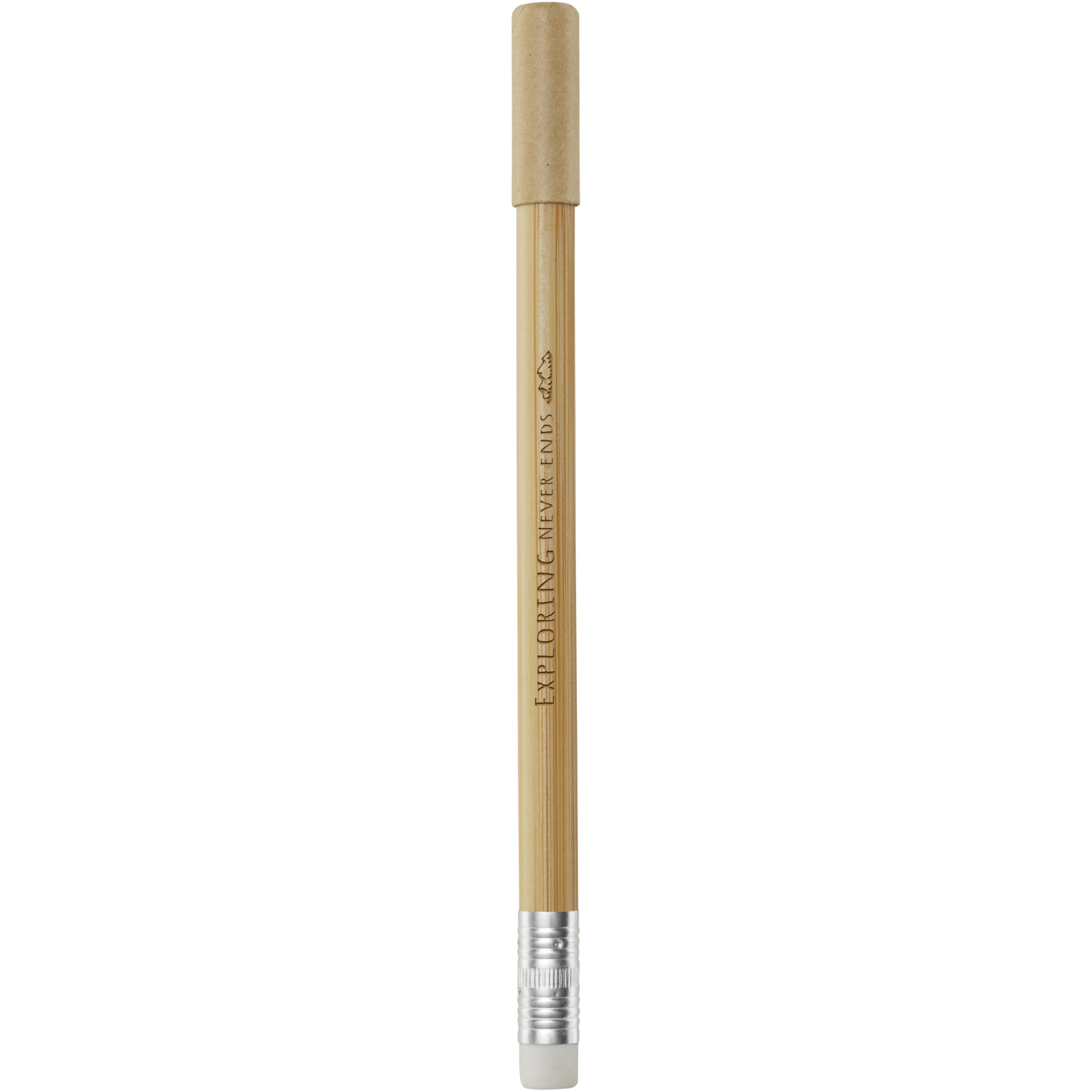 Der Krajono Kugelschreiber ohne Tinte benötigt keine Tintenpatronen oder Nachfüllminen. Die schwarze Grafitspitze des Stiftes hinterlässt sichtbare Spuren, wenn sie mit der Schreibfläche in Kontakt kommt. Wenn Sie sich für einen Kugelschreiber aus Bambus entscheiden, treffen Sie eine nachhaltigere Wahl und fördern die Verwendung erneuerbarer Materialien. Der Stift bietet einen Radiergummi an der Spitze. Schreiblänge: 1500 Meter. Spitzengröße: 0,5 mm.