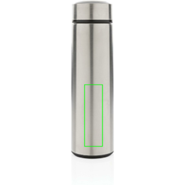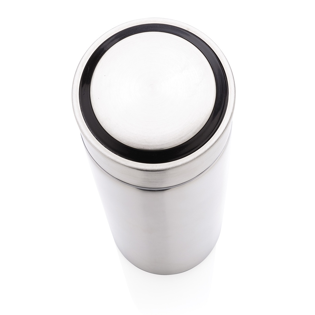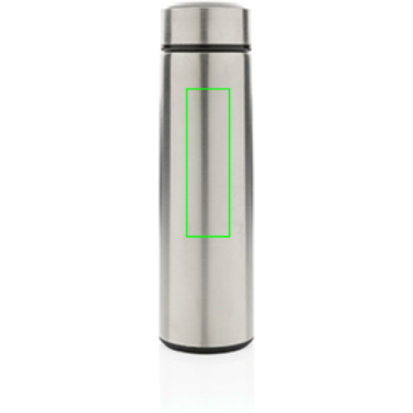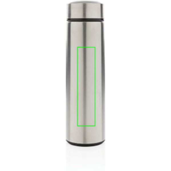 Halten Sie Ihren Kaffee oder Tee mit dieser Vakuum-Edelstahlflasche mit gebürstetem Metalldeckel schön warm. Die Flasche verfügt über einen auslaufsicheren Schraubdeckel und ermöglicht das Trinken von jeder Seite. Mit breiter Öffnung für eine einfache Reinigung. Kapazität 450ml. BPA-frei. Nur Handwäsche.