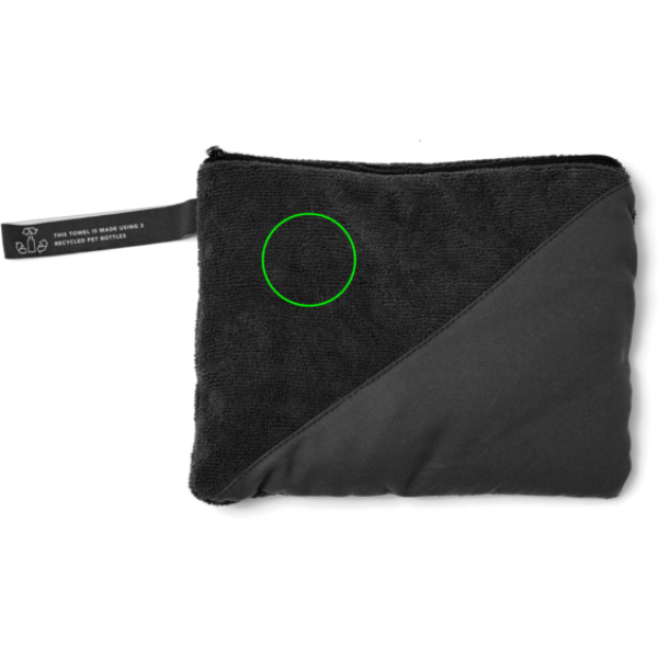 Sporthandtuch aus Mikrofaser 300gr/m² , hergestellt aus recycelten PET-Flaschen. Durch das einzigartige Frotteegefühl nimmt dieses Handtuch mehr Wasser auf und trocknet dreimal schneller als ein herkömmliches Handtuch. Ideal für Outdoor-Aktivitäten und Sport. Das Handtuch ist leicht und kompakt und hat die ideale Größe für Reisen oder das Fitnessstudio. Besteht zu 50% aus GRS-zertifizierten (Global Recycle Standard) recycelten Materialien, wobei die GRS-Zertifizierung eine vollständig zertifizierte Lieferkette für recycelte Materialien garantiert. Der gesamte recycelte Anteil basiert auf dem Gesamtgewicht des Produkts.