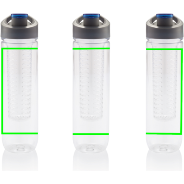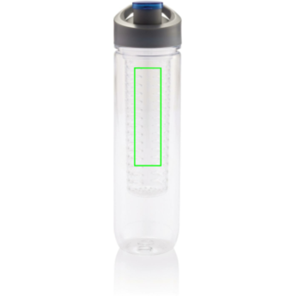 800ml Tritan Flasche mit Früchte-Aromafach. Bereichern Sie Ihr Wasser mit Vitaminen und einer Menge Geschmack durch das einfache Hinzufügen von frischen Früchten im Aromafach. Dieses Fach kann durch das Zusetzen von Eiswürfeln auch als Kühlfach verwendet werden. Nur Handwäsche.