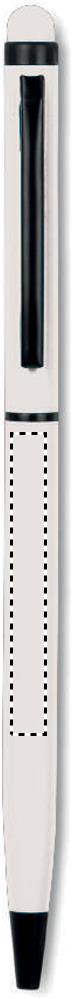 A5 notebook with 2-in-1 stylus ball pen. Hard PU cover. Casebound. 144 lined pages (72 sheets). Matching ball pen with touch screen stylus. Blue ink. Matching elastic closure strap and ribbon bookmark.