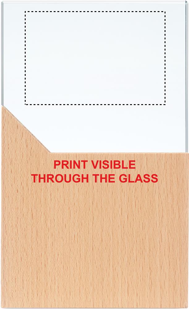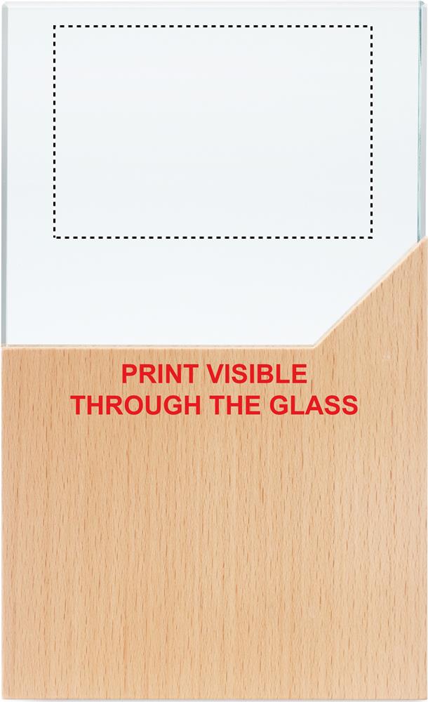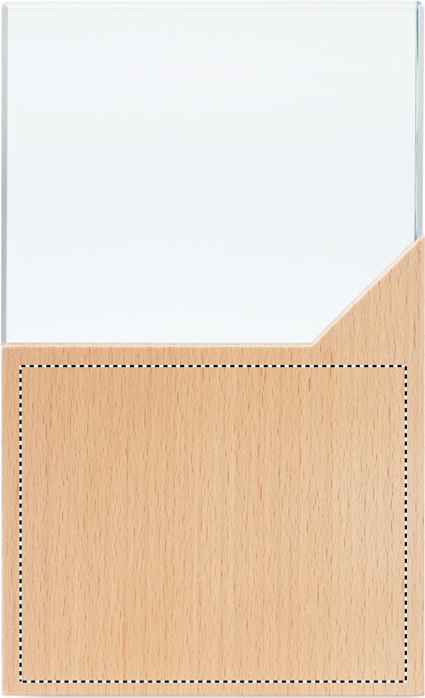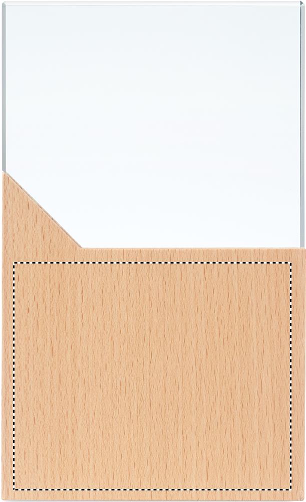 Crystal award or memorial plaque on a beech wooden base in a gift box.