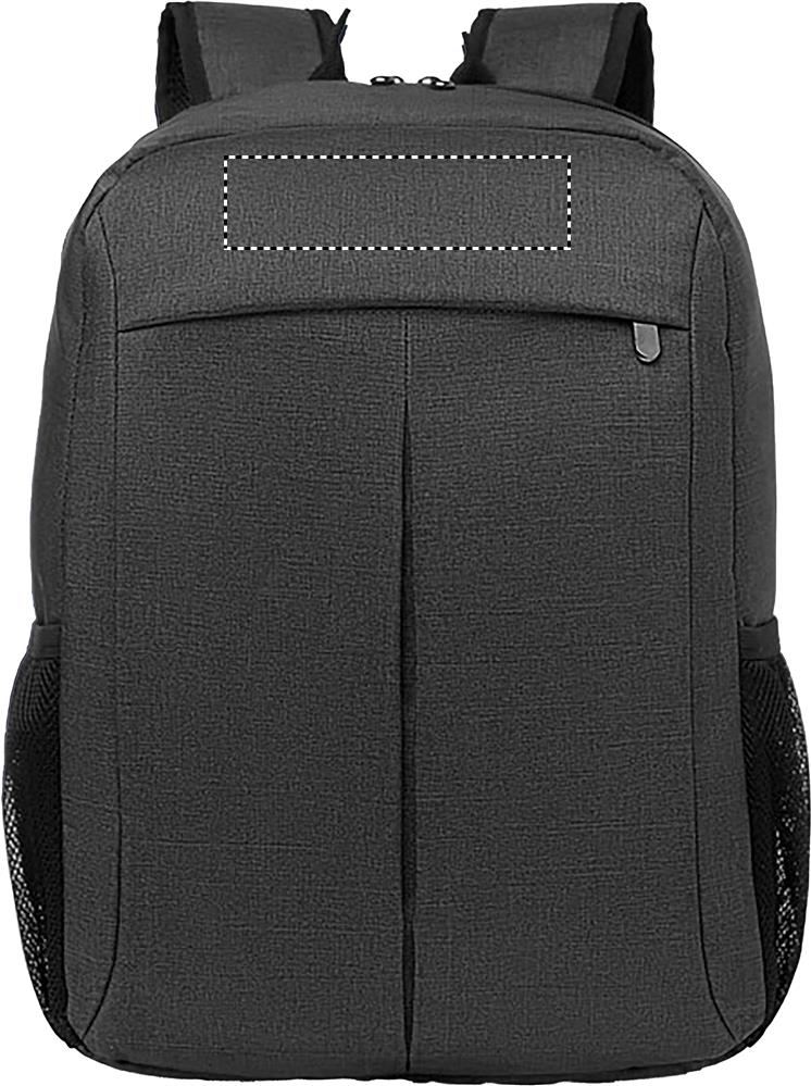 15 Inch computer backpack in 360D 2 tone polyester. Includes one internal 15 inch laptop compartment and one main front part with zipper pocket. Padded back and shoulder straps. Additional pocket for Tablet compartment. Trolley holder back side.