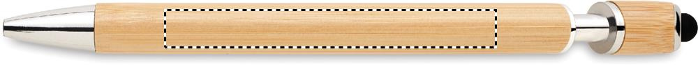 Stylus push button ball pen with bamboo finish. Blue ink.