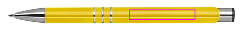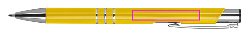 Fully lacquered metal ballpen with 3 decorative rings and blue-writing refill with large capacity. Your logo will be engraved to the right of the clip.