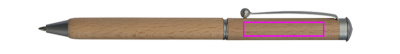 Twist mechanism wooden ballpen with blue-writing metal refill and wooden case. Your logo is engraved below the clip.