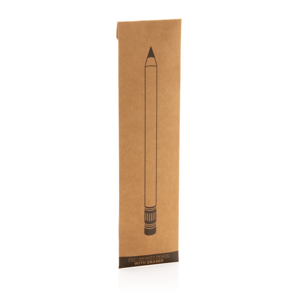 This infinity pencil with eraser replaces your traditional wooden pencil. Traditional wooden pencils write only up to around 200 metres, but this FSC® bamboo infinity pencil, has a writing length of up to around 20.000 metres using a graphite tip to produce a graphite line. Not only does it write like a pencil, but the markings can be erased. It works by leaving a graphite line on paper just like a regular traditional wooden pencil but it wears down so slowly, that it should outlast up to 100 traditional wooden pencils!