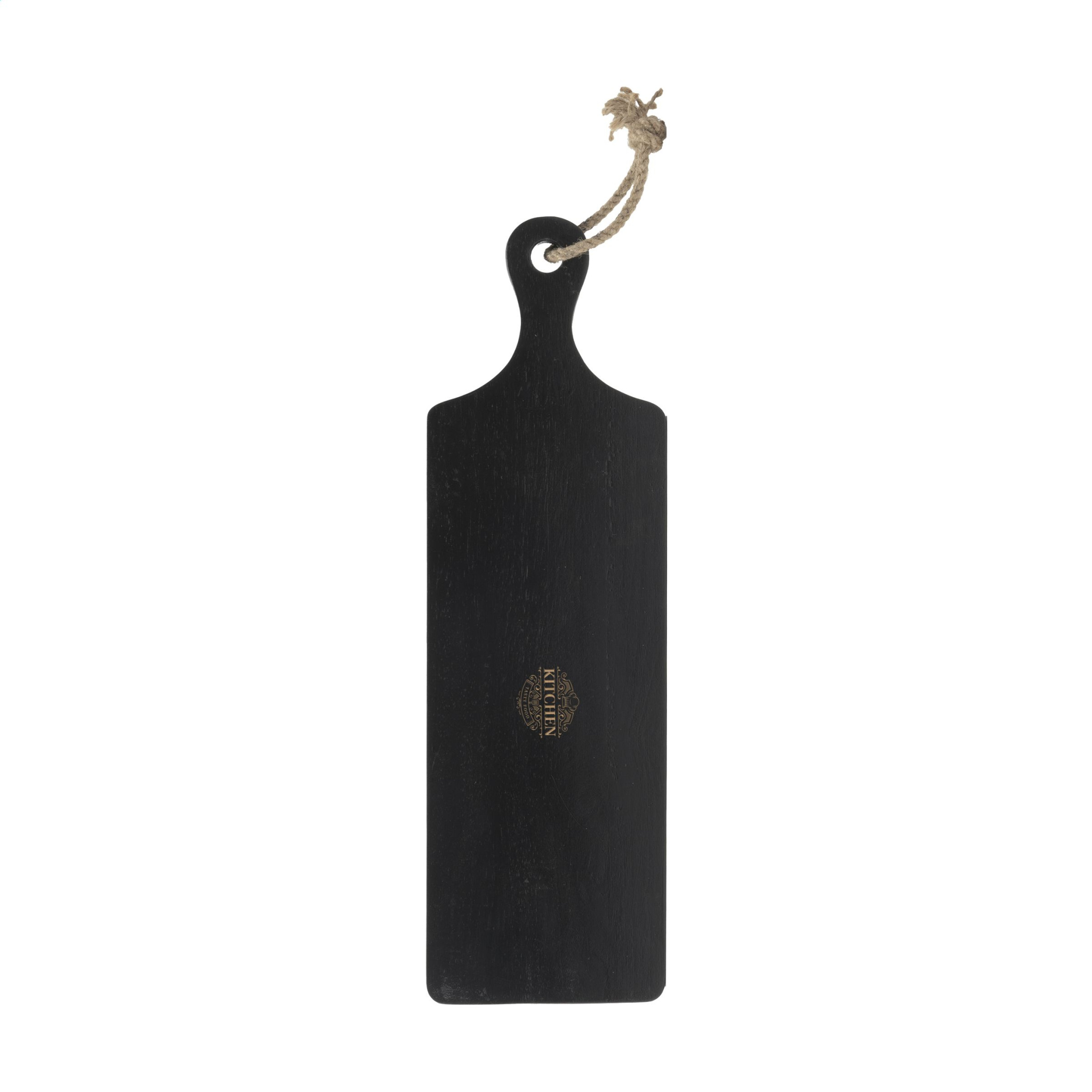 Serving board with decorative cord. The board is made from strong rubberwood and finished with a chic black lacquer finish. Ideal for use as a tapas board, where the appetisers contrast beautifully against the black background, but also suitable as a cutting board.