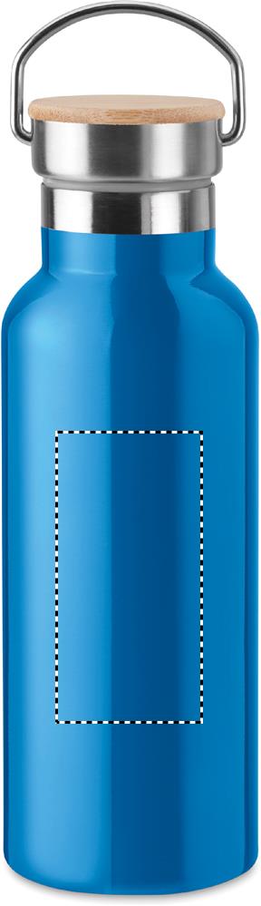 Double wall stainless steel insulating vacuum flask with lid in bamboo and carry handle. Capacity: 500 ml. Sublimation print available on white item only. Leak free. Bamboo is a natural product, there may be slight variations in colour and size per item, which can affect the final decoration outcome.