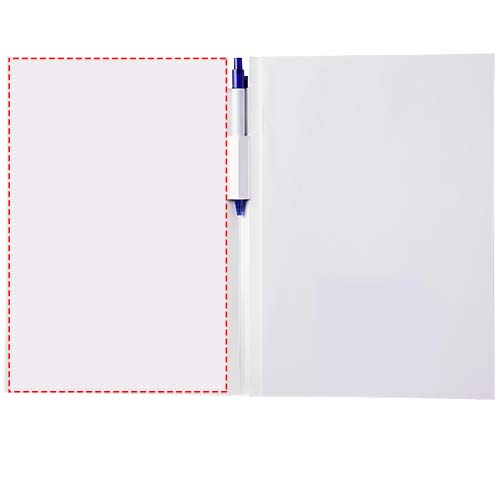 Essential conference pack A4. Includes an A4 notepad with 50 sheets (80g/m2) blank paper and a calypso pen in the spine area. The conference pack has a hard cover (350g/m2). Full colour decoration possible on both sides of the cover, as well as on each sheet.