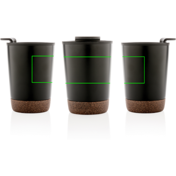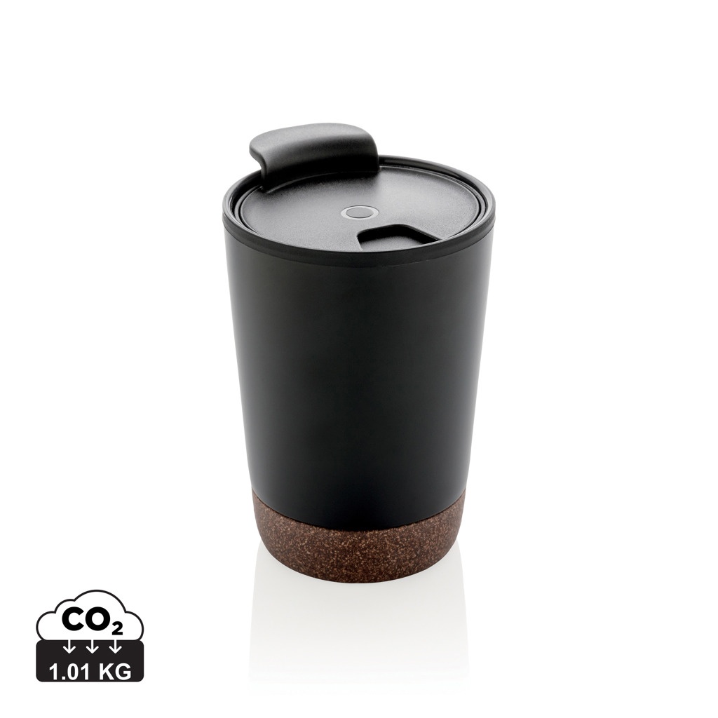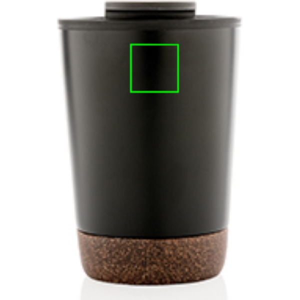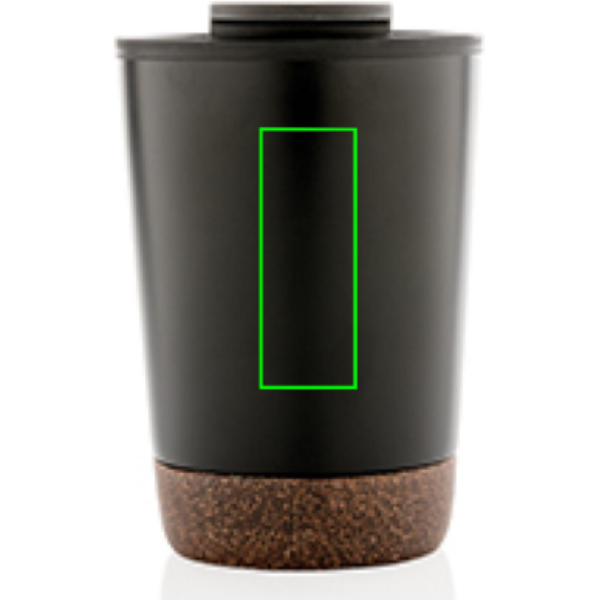 Start your day with your favourite beverage in this double wall coffee mug with recycled plastic inner and unique cork detail. Keeps your drinks warm for up to 3h and cold up to 6h. Made with GRS certified recycled materials. The inner is made from 100% GRS certified PP. GRS certification ensures a completely certified supply chain of the recycled materials. Total recycled content: 52% based on total item weight. BPA free. Capacity 300ml. Including FSC®-certified kraft packaging.