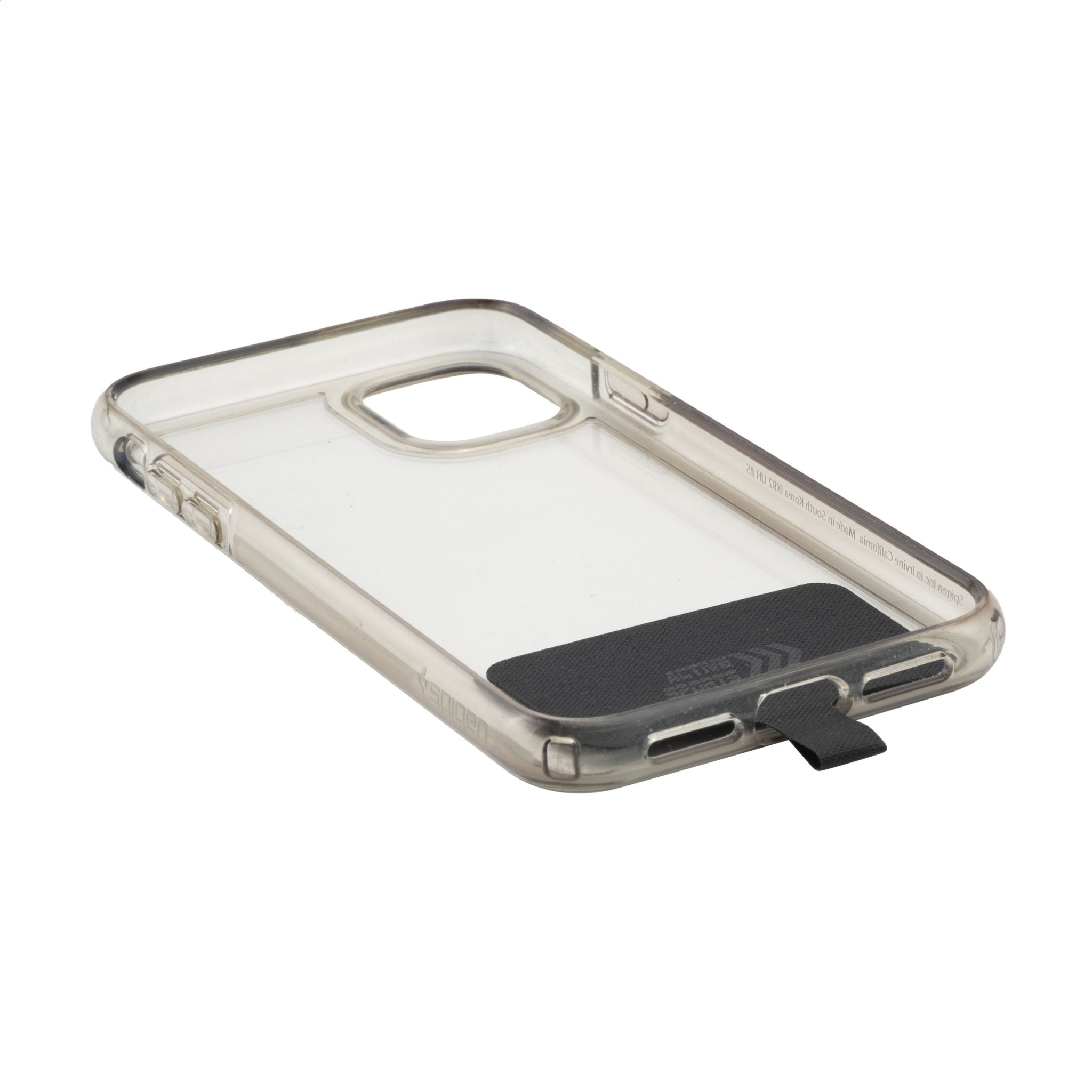 Lanyard of strong woven RPET polyester (made from recycled PET bottles). Supplied with a metal carabiner, a universal patch and a plastic safety lock. The lower part can be disconnected by means of a plastic buckle. The patch makes it possible to attach your smartphone to your lanyard. With this combination, you can carry your smartphone safely around your neck. This ensures that you have your phone quickly at hand and you can keep your hands and clothing pockets free. This patch is compatible with most smartphone and case combinations, but not with cases with an open bottom. The system is designed so that your phone's charging port is not blocked, even when attached to the lanyard. Including full-colour sublimation print on the lanyard. Made in Europe.