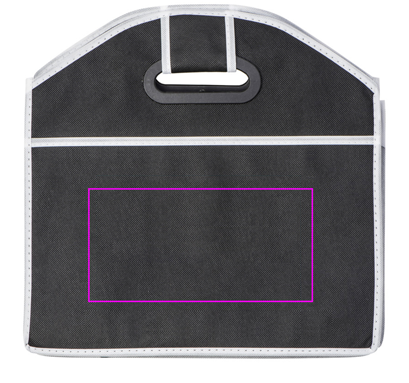 Non-Woven foldable bag for the trunk. When folded, a great space-saver; when unfolded, the perfect space for all your purchases. We print your logo on one side. Product doesn't have Velcro on the bottom for rear attachment.