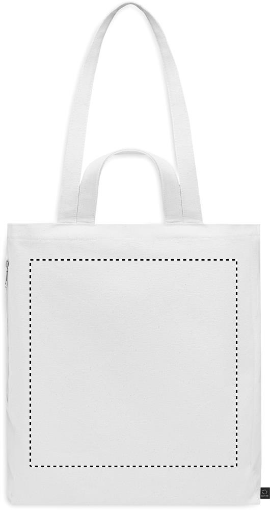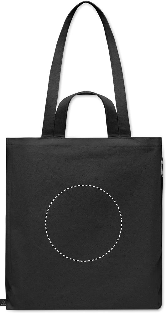 Recycled polycotton shopping or beach bag (70% recycled cotton, 30% recycled polyester) with short and long handles. It has a side zippered pocket. 380 gr/m².