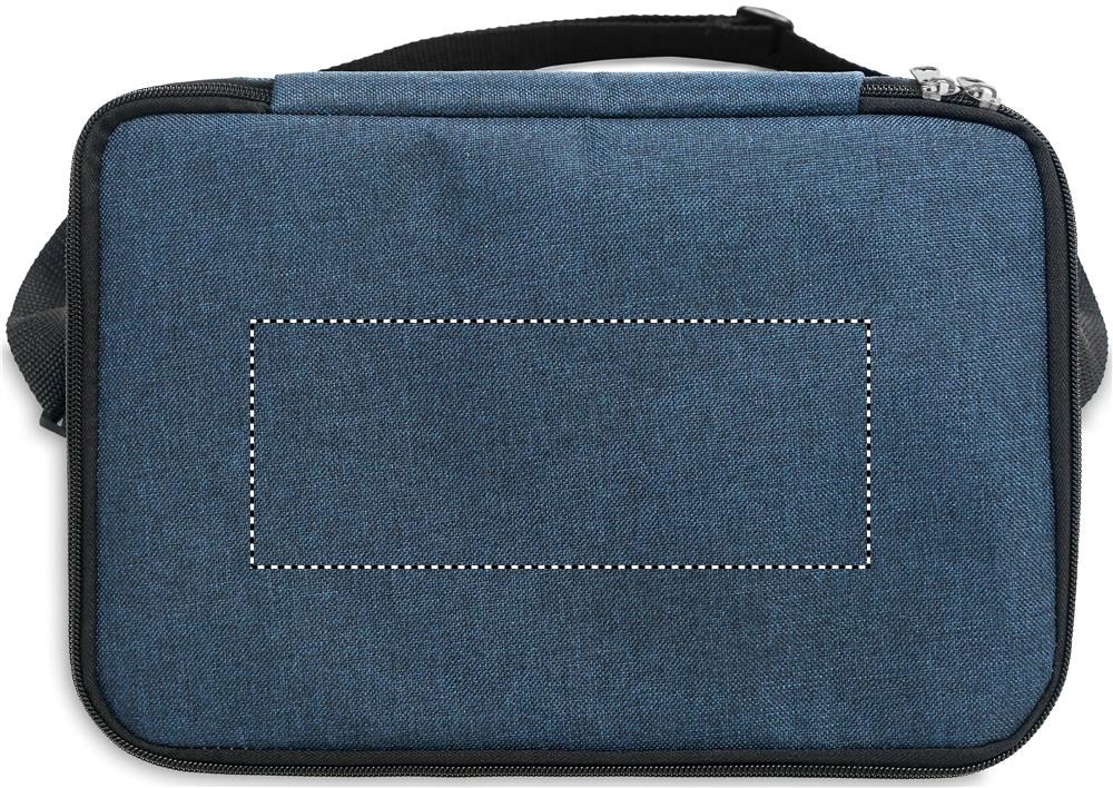 2 tone 600D RPET cooler bag with 2 compartments and PEVA lining. Adjustable shoulder strap and front pocket. Isolation material: 0.15mm PEVA + 3mm foam.