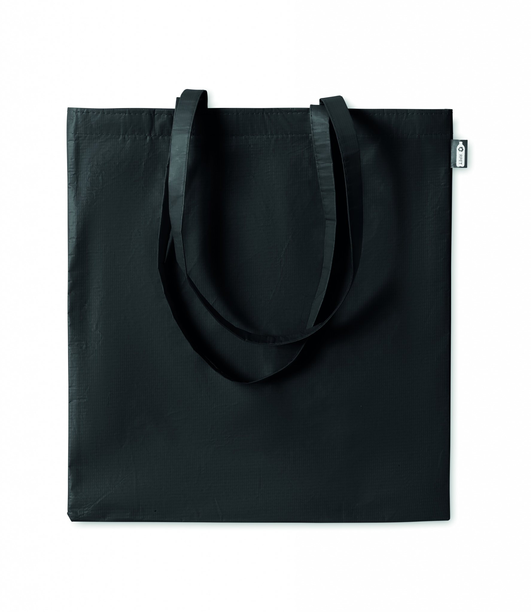 RPET laminated non woven shopping bag with long handles. 100 gr/m².