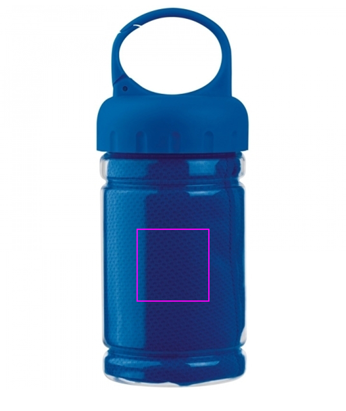 Great companion for sports, cooling towel packed in a plastic bottle with carabiner. We print your logo on the bottle (only 1C feasible).