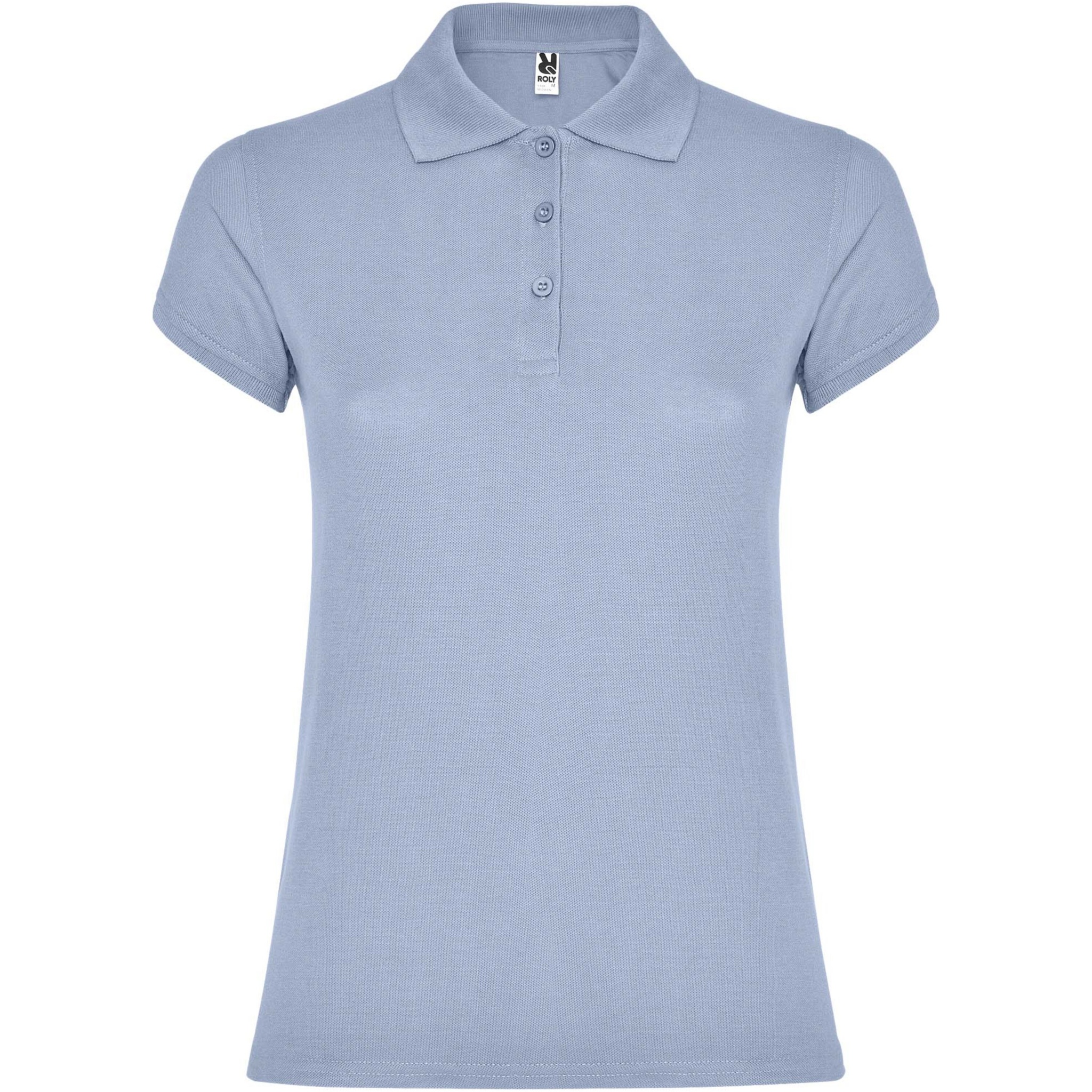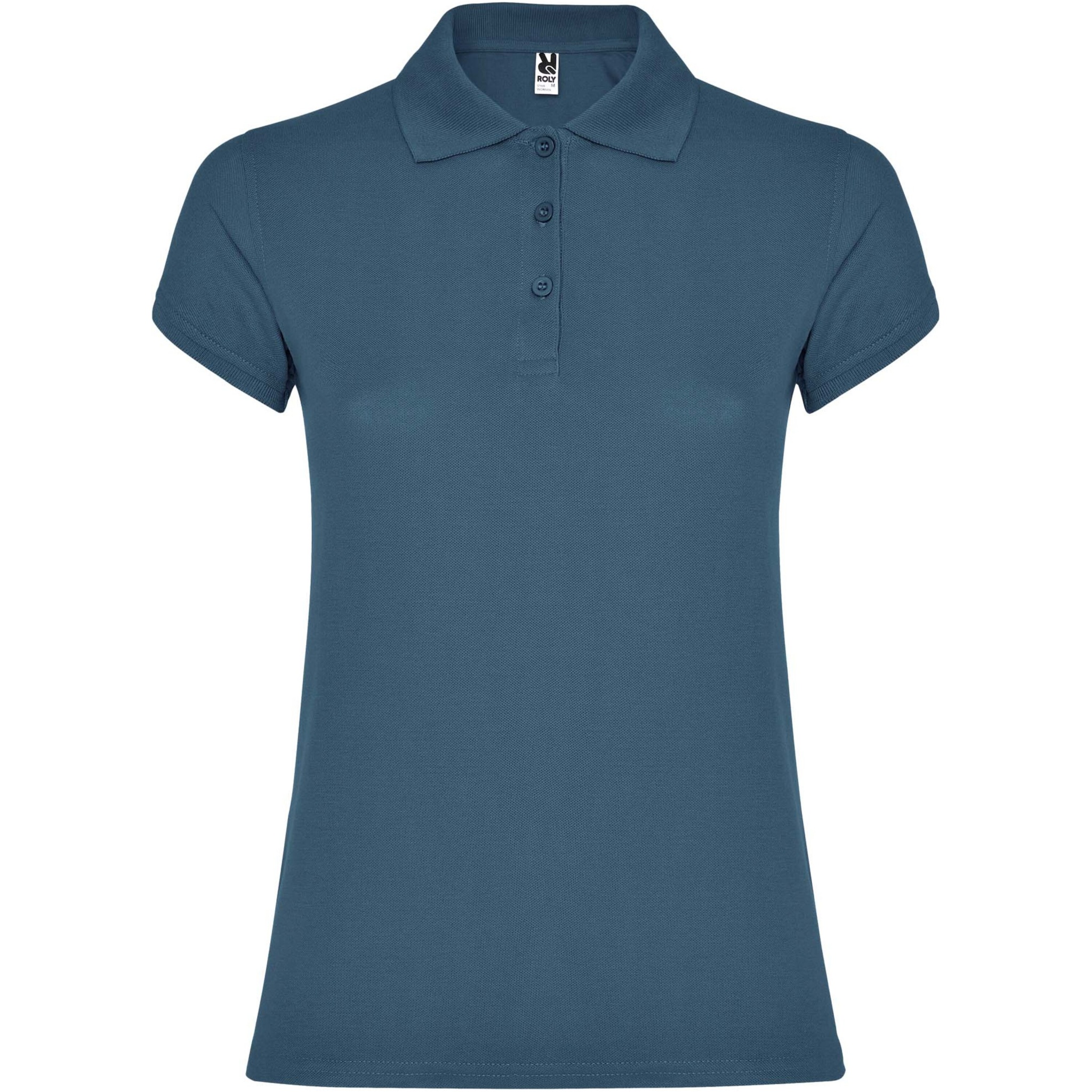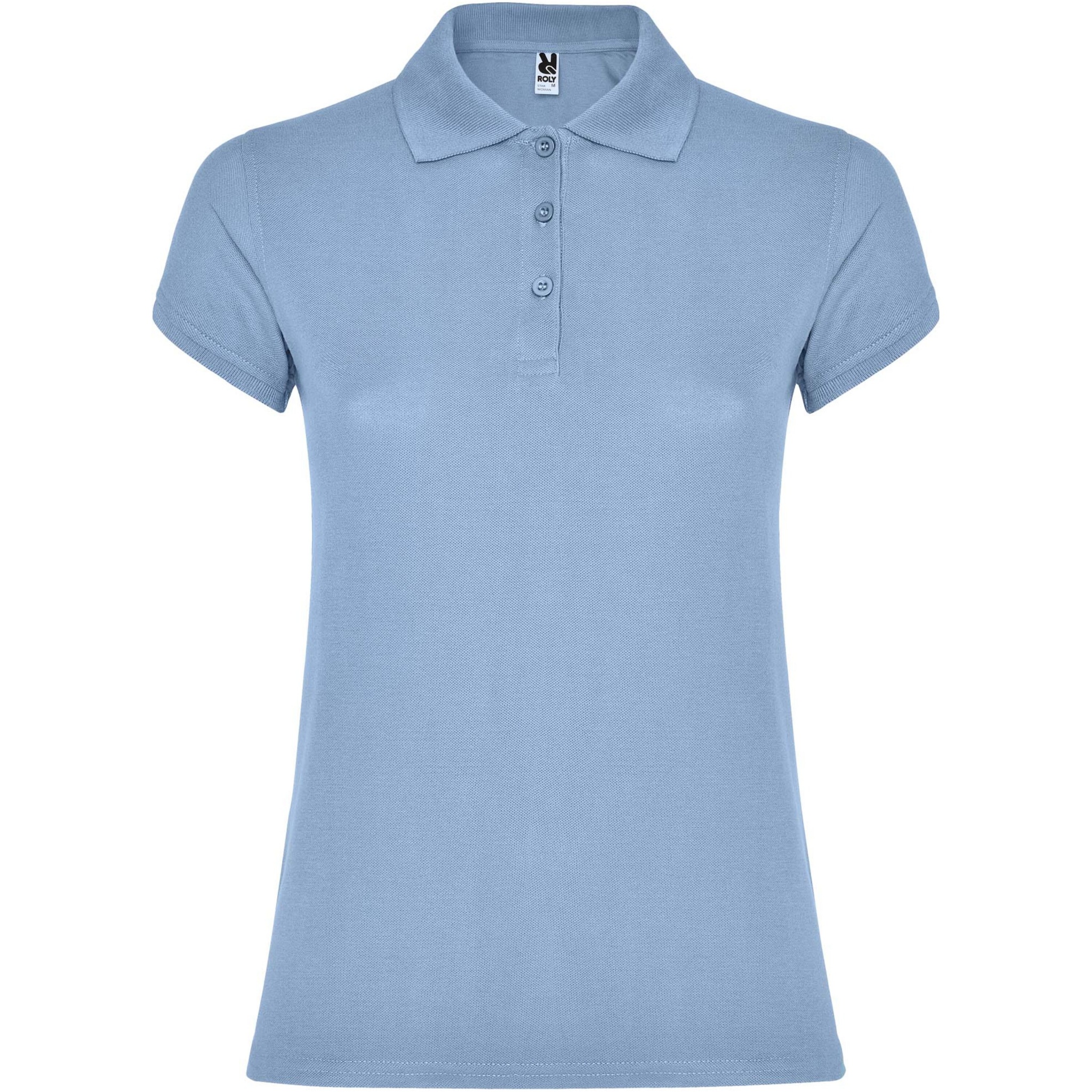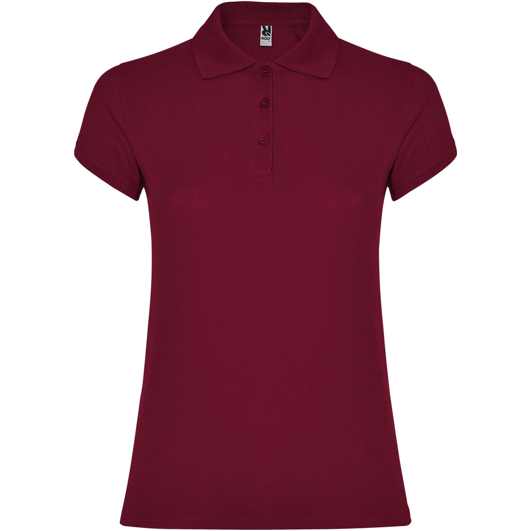 Short-sleeve polo shirt for women. Reinforced covered seams in interior collar. 1x1 ribbed collar and cuffs. Side seams and fitted cut. Narrow 3-button placket. Side slits. Removable label. The model is 179 cm and is wearing size S.