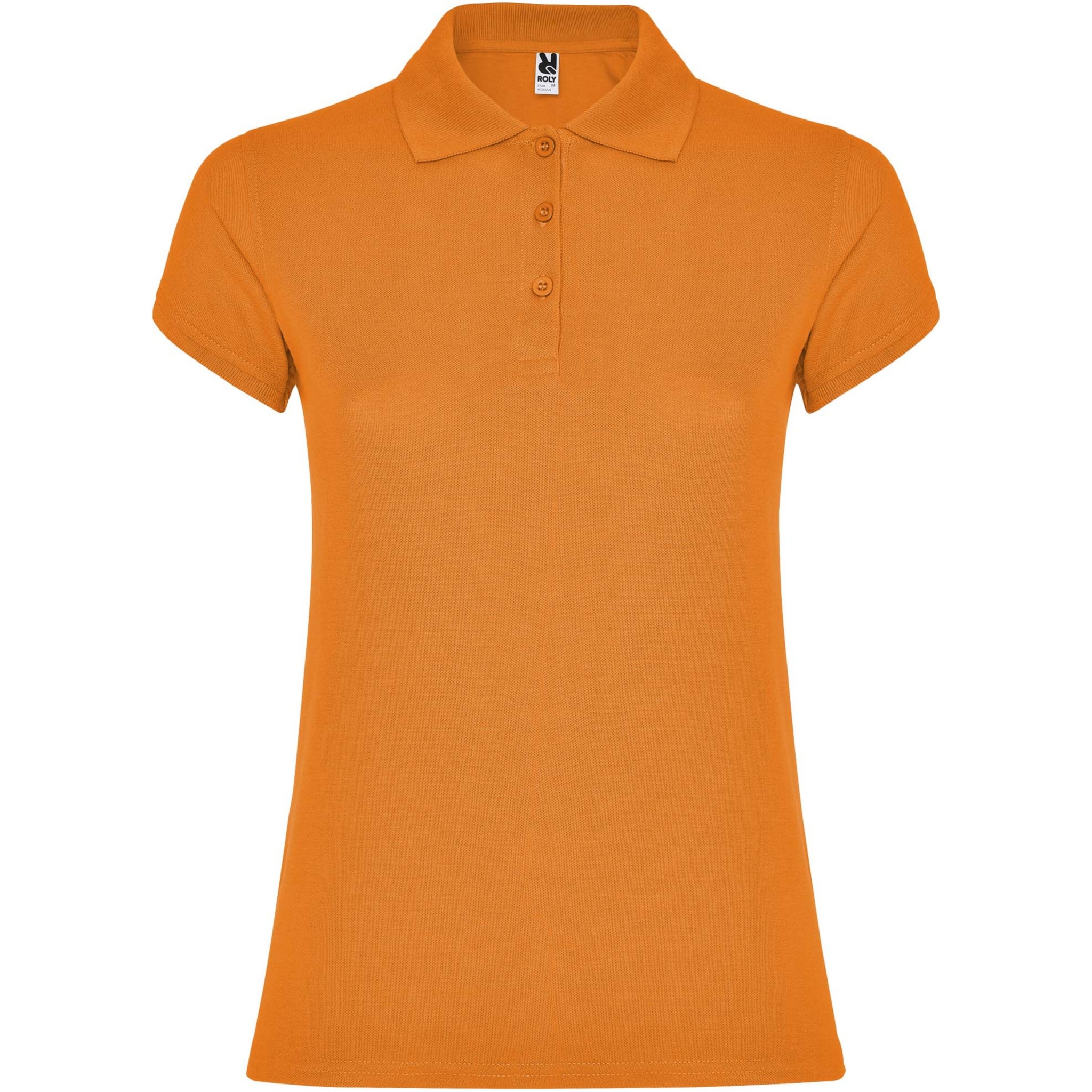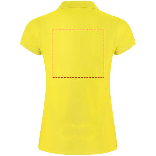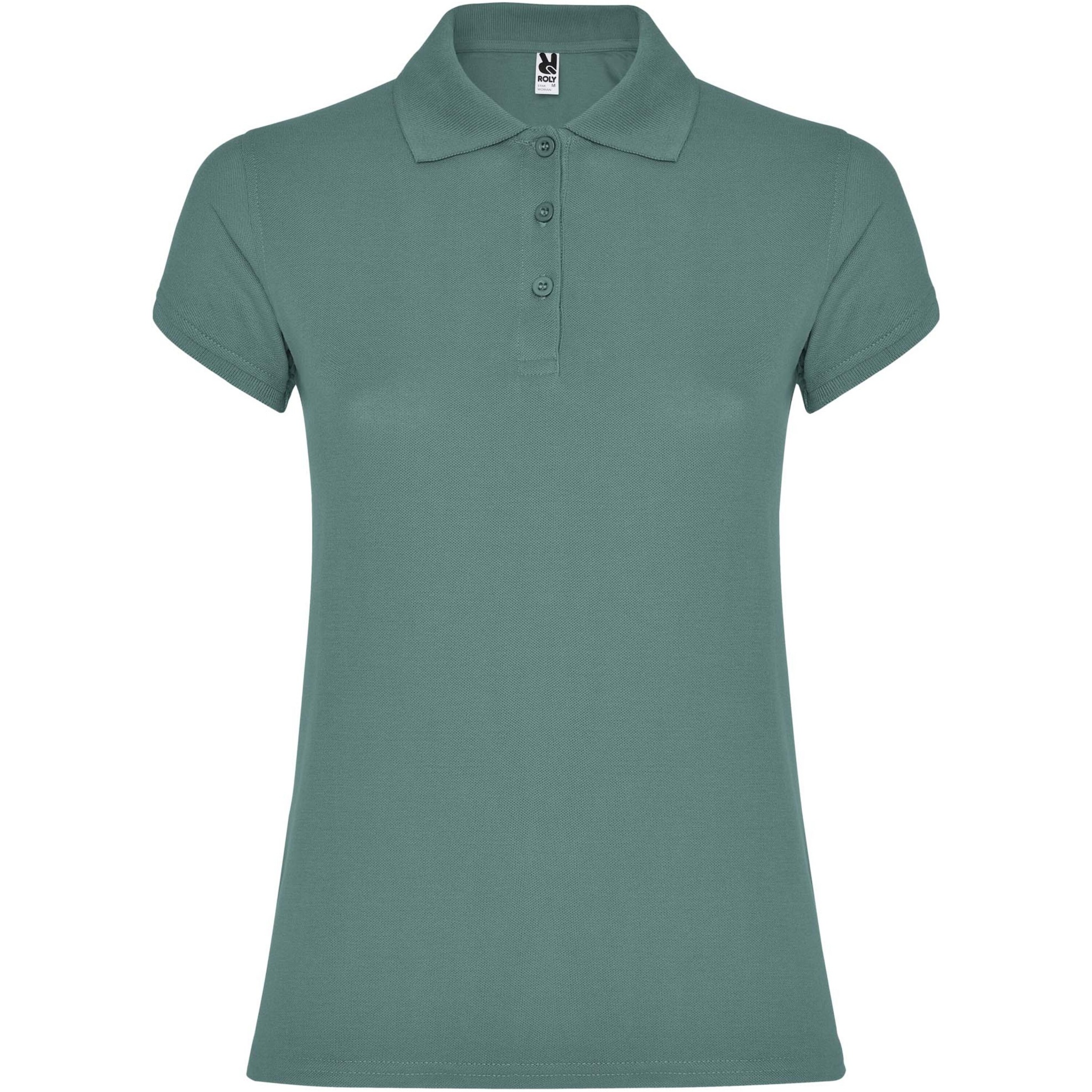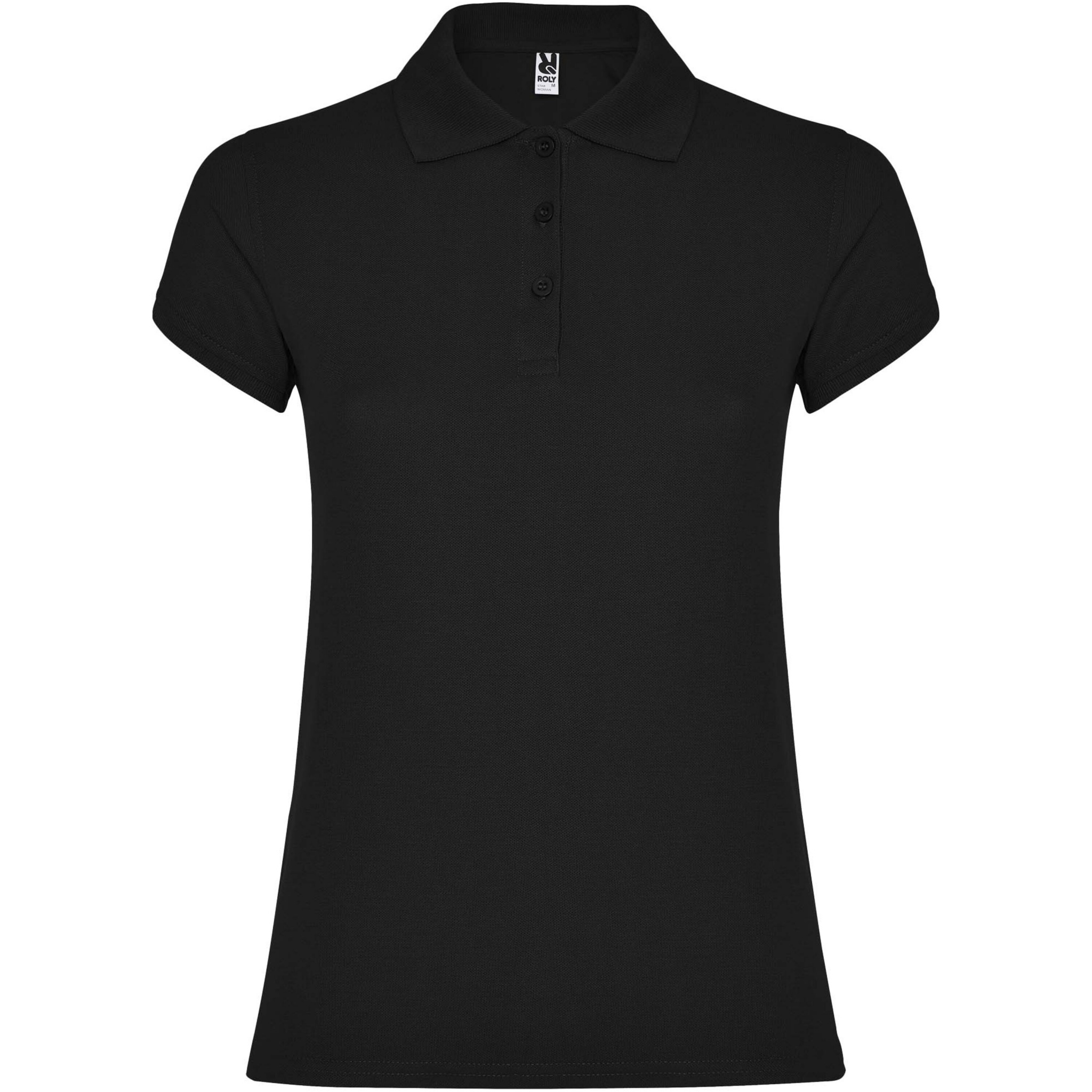 Short-sleeve polo shirt for women. Reinforced covered seams in interior collar. 1x1 ribbed collar and cuffs. Side seams and fitted cut. Narrow 3-button placket. Side slits. Removable label. The model is 179 cm and is wearing size S.