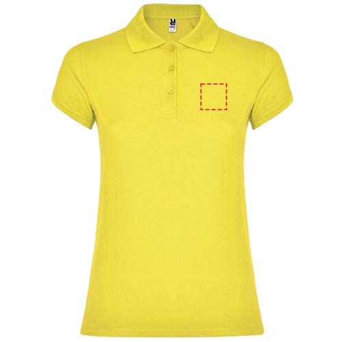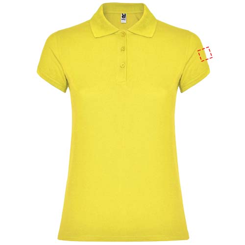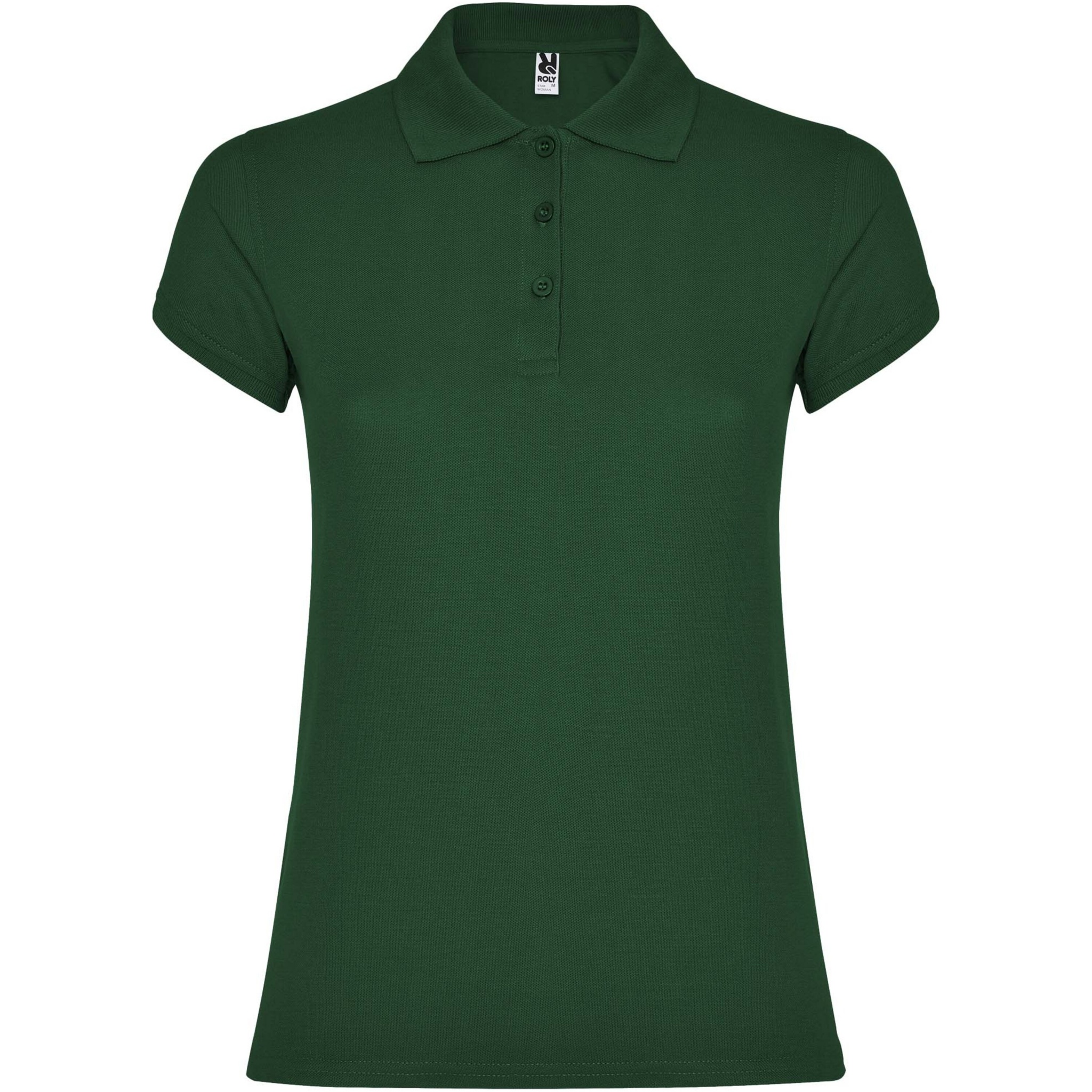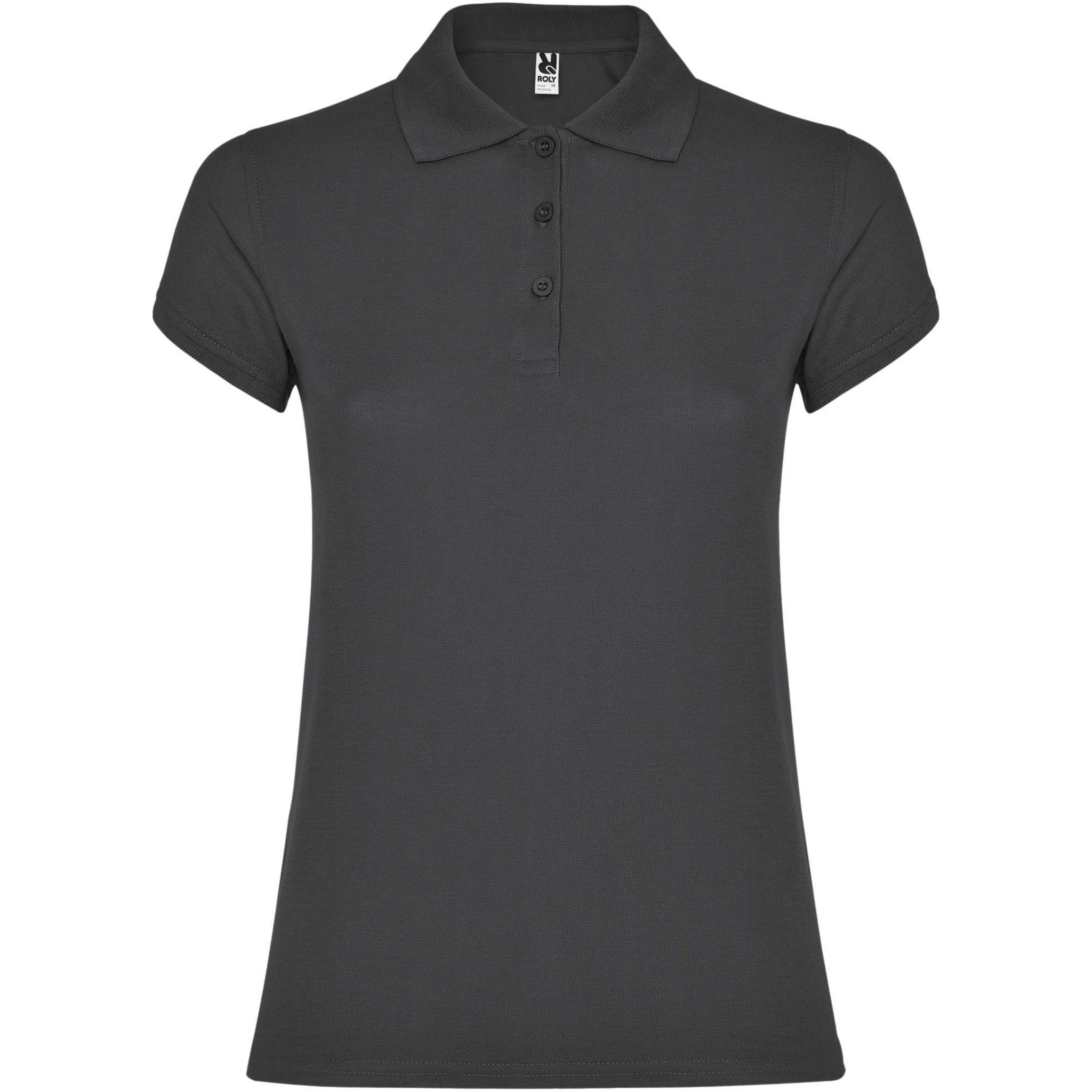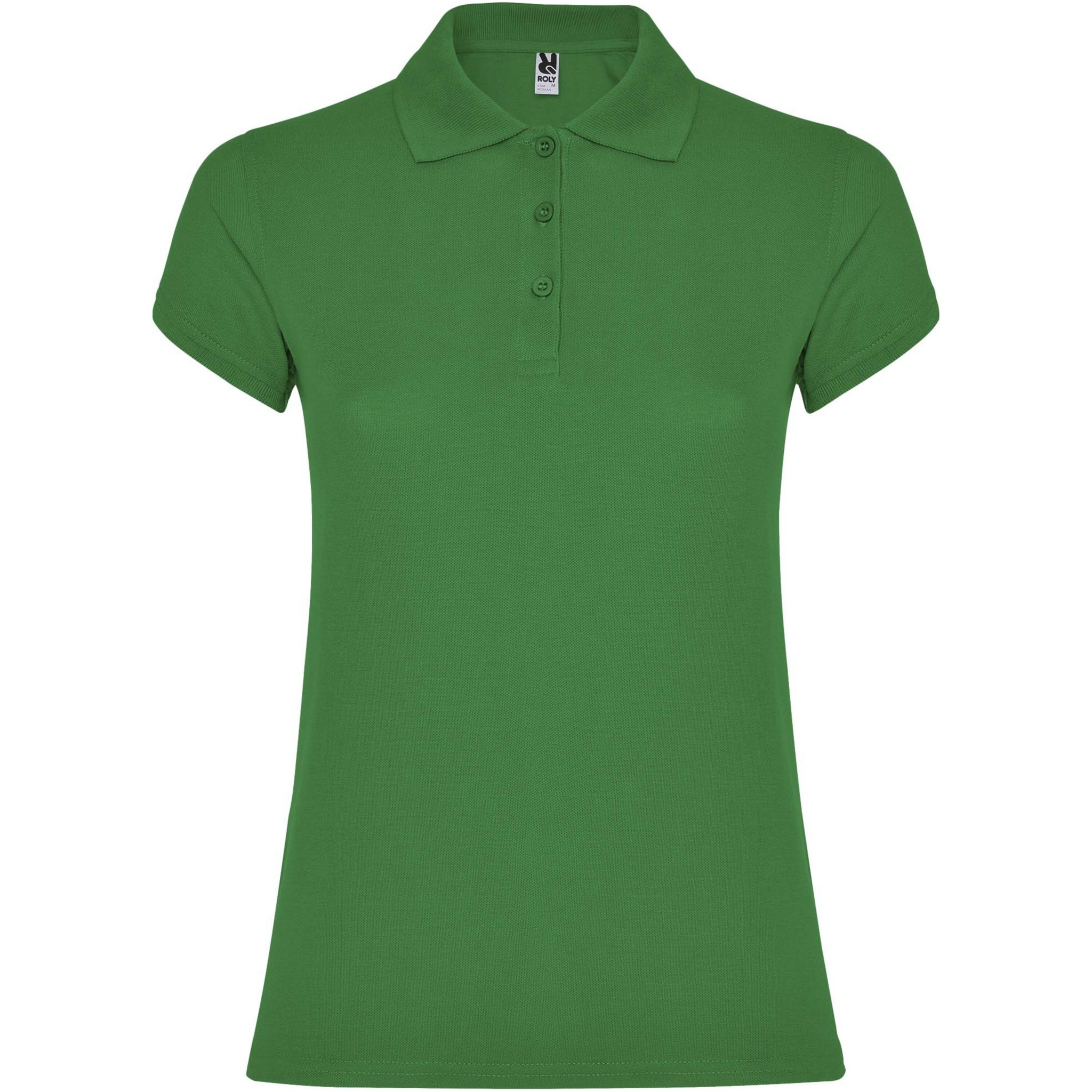 Short-sleeve polo shirt for women. Reinforced covered seams in interior collar. 1x1 ribbed collar and cuffs. Side seams and fitted cut. Narrow 3-button placket. Side slits. Removable label. The model is 179 cm and is wearing size S.