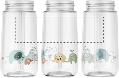 Kid's drink bottle in tritan with built in straw lid. Leak free. Capacity: 450 ml.