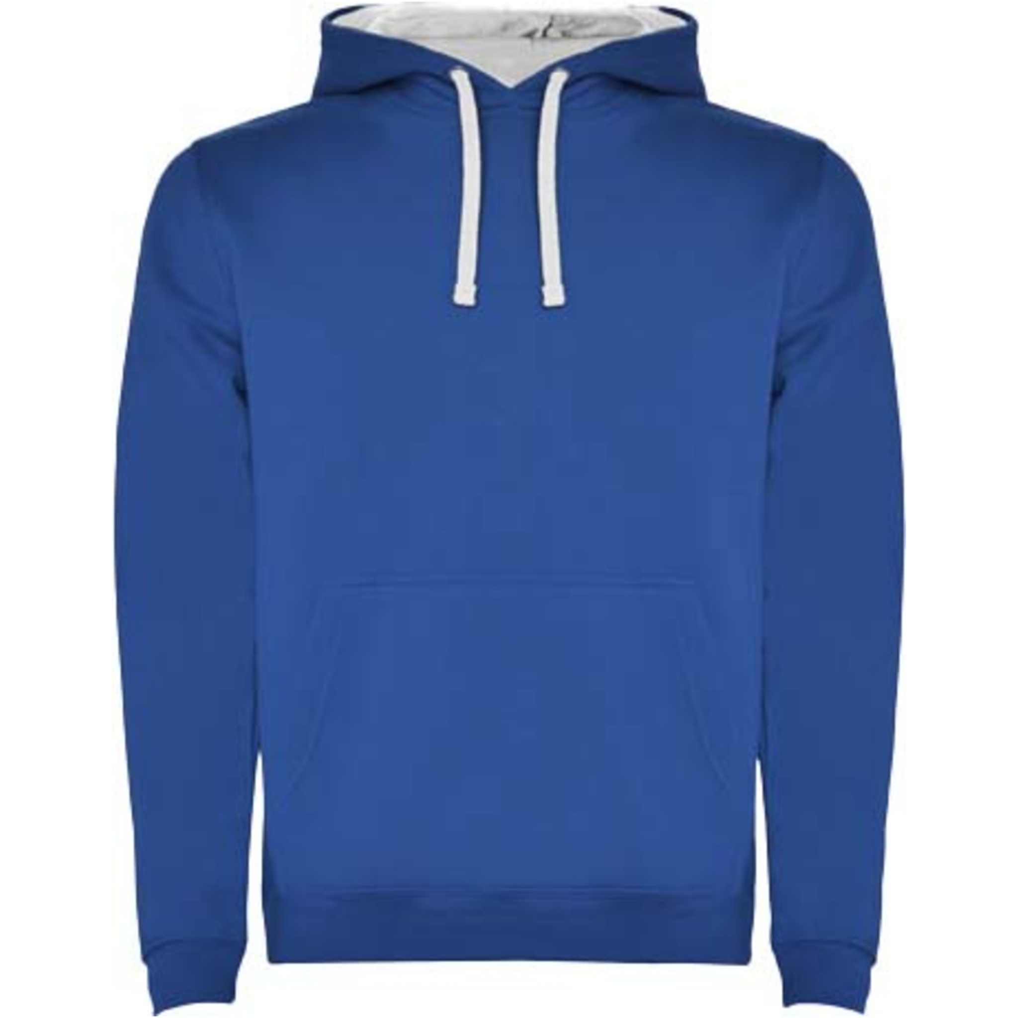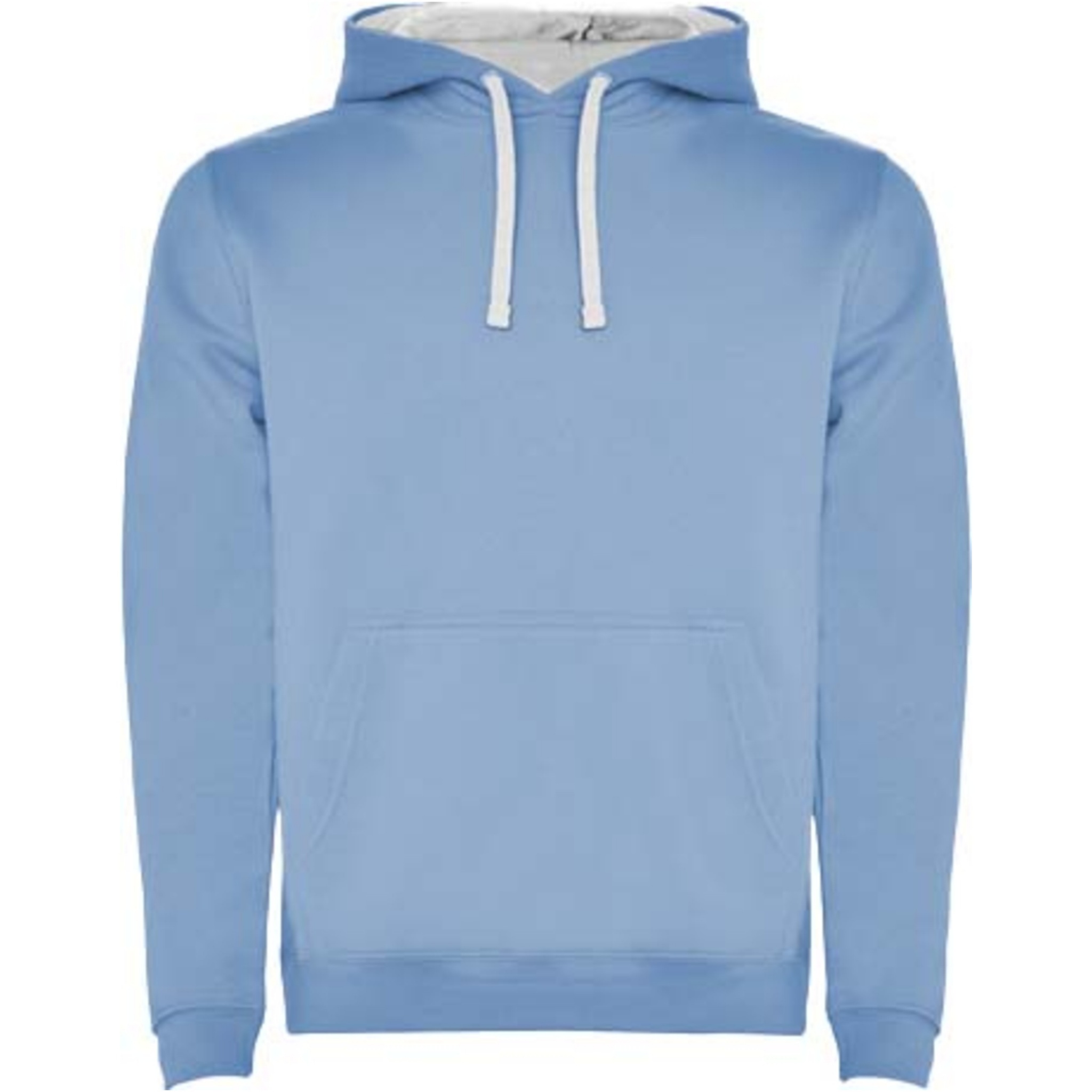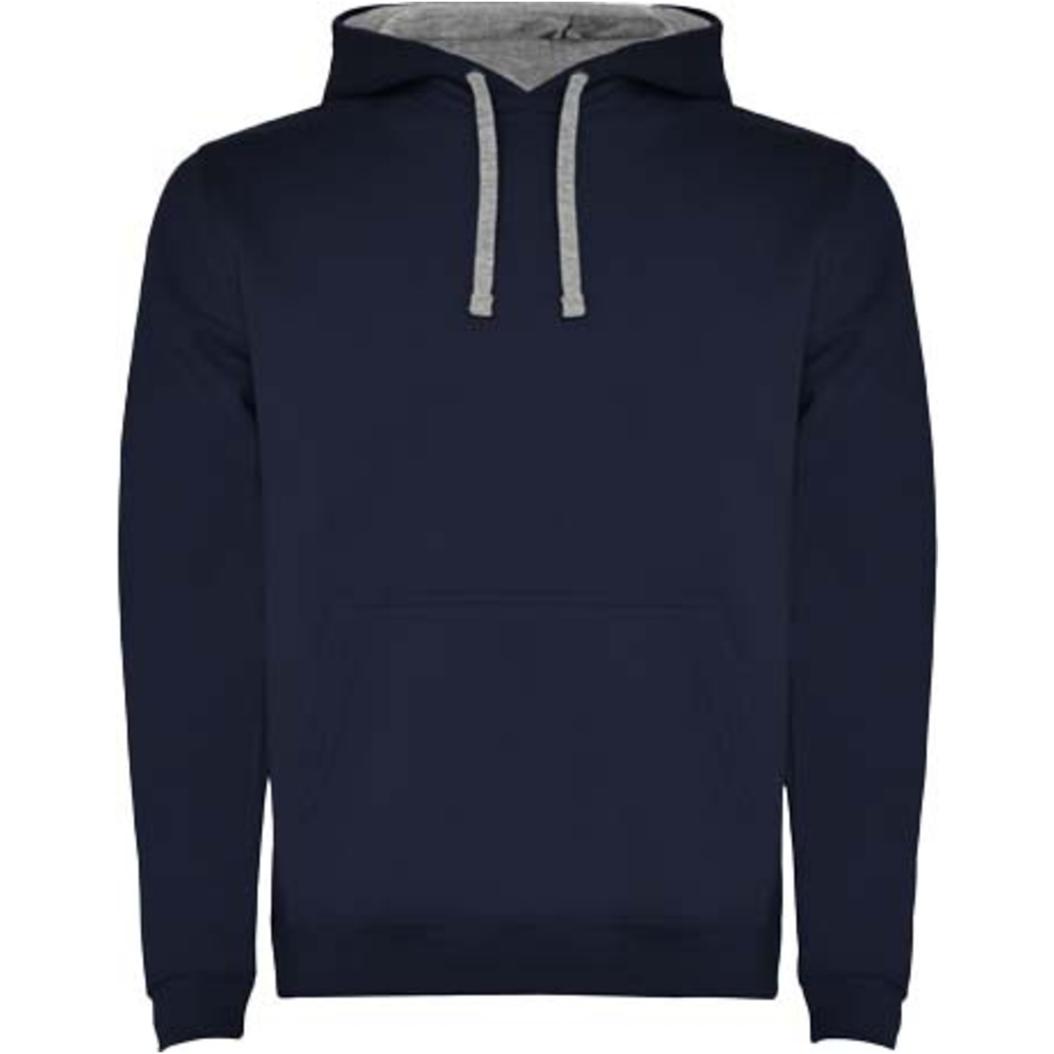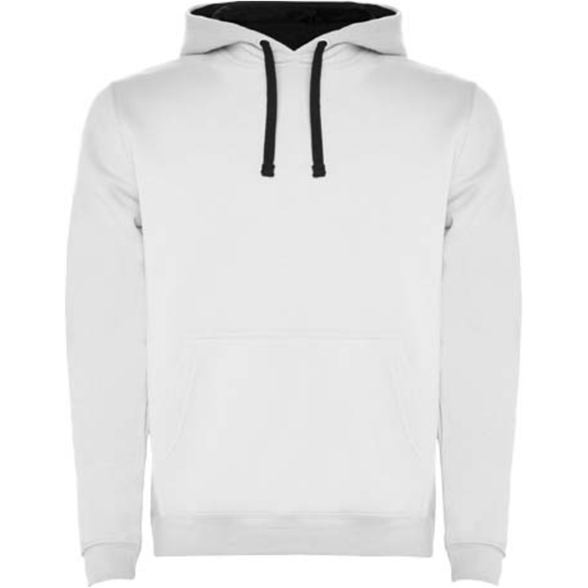 Hoodie with double fabric, adjustable drawcord, reinforced covered seams in collar and kangaroo style pocket. Available in uni-colours and two-tone colours. 1x1 elastane rib in cuffs and waistband. Removable label. The model is 185 cm and is wearing size M.