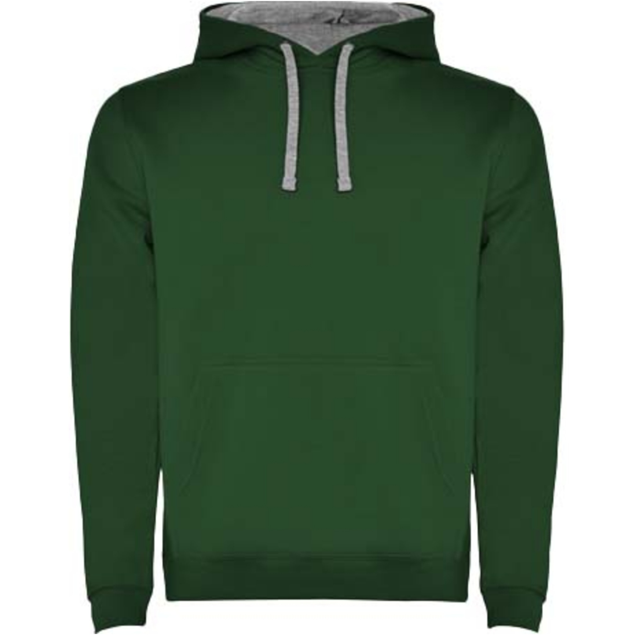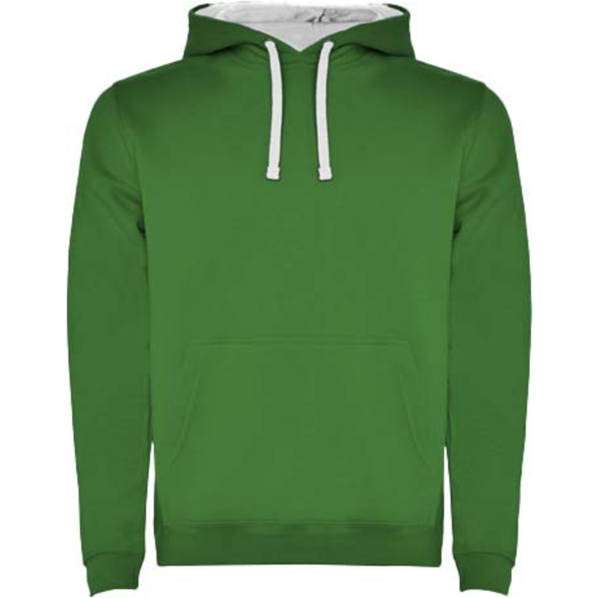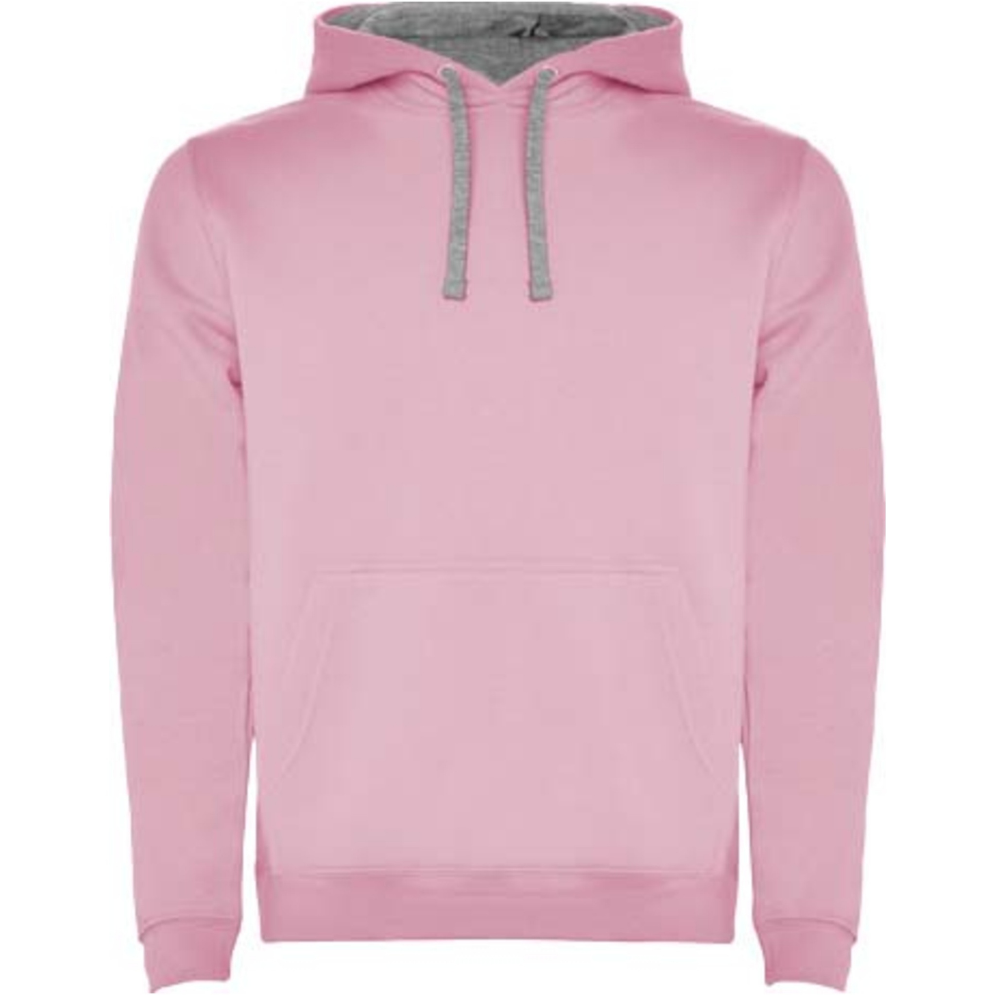Hoodie with double fabric, adjustable drawcord, reinforced covered seams in collar and kangaroo style pocket. Available in uni-colours and two-tone colours. 1x1 elastane rib in cuffs and waistband. Removable label. The model is 185 cm and is wearing size M.