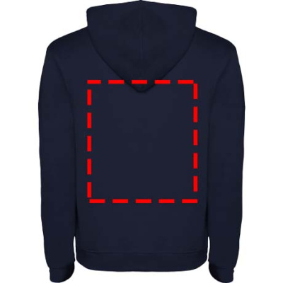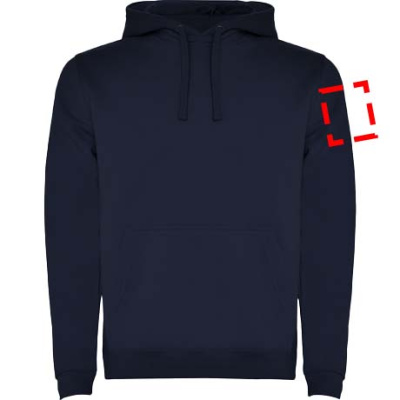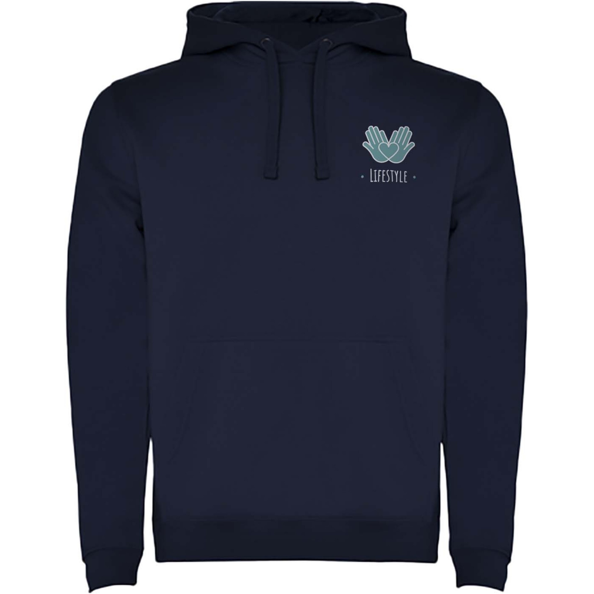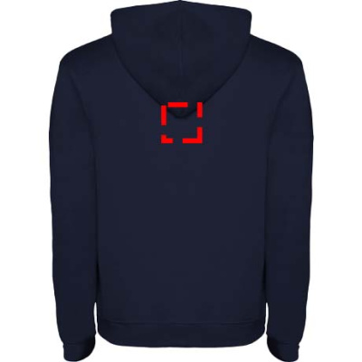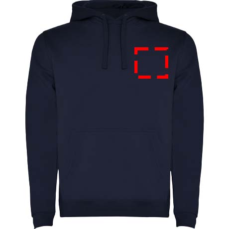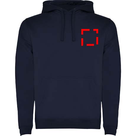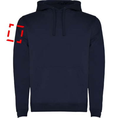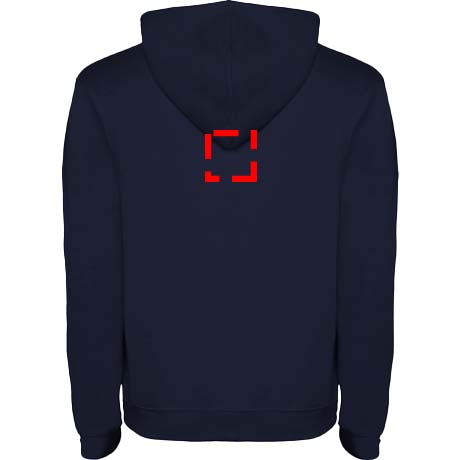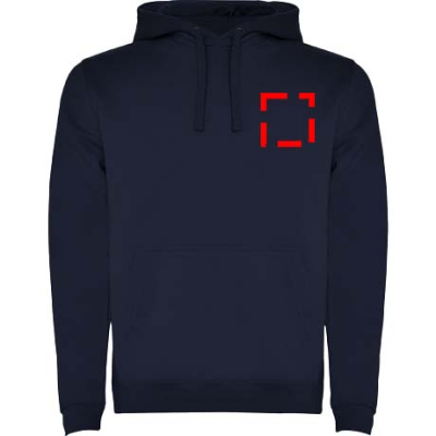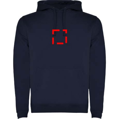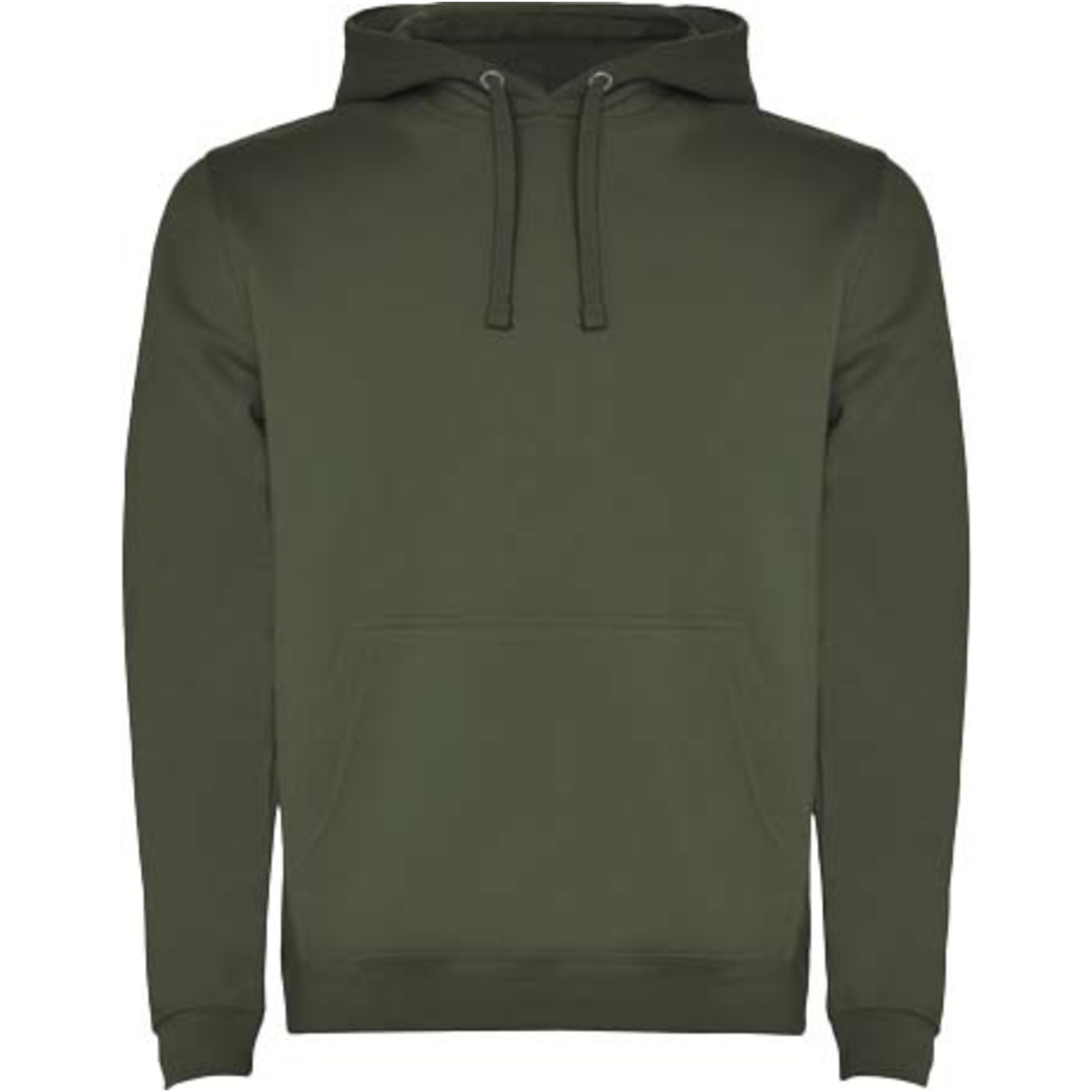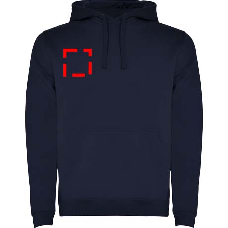 Hoodie with double fabric, adjustable drawcord, reinforced covered seams in collar and kangaroo style pocket. Available in uni-colours and two-tone colours. 1x1 elastane rib in cuffs and waistband. Removable label. The model is 185 cm and is wearing size M.