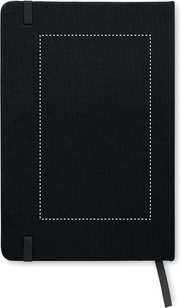 A5 märkmik kõva 600D RPET kaanega. Casebound. 160 joonega taaskasutatud paberilehte (80 lehte). Kokkusobiv elastne sulgemisrihm ja paelaga järjehoidja.