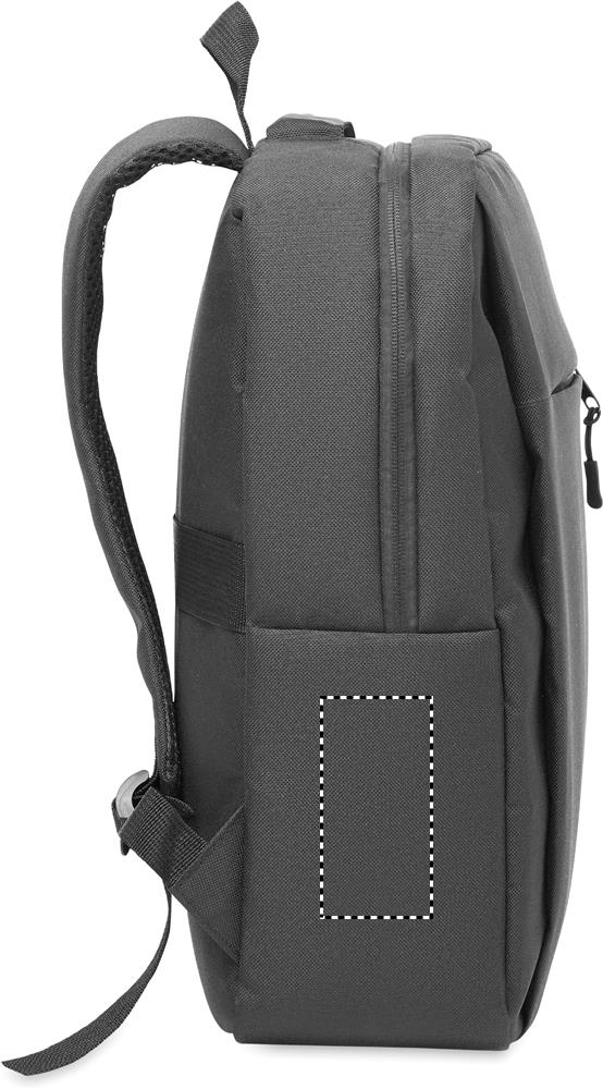 Õhuke seljakott 600D RPET polüestrist ja 210D voodriga. Sellel on 15-tolline sülearvuti sahtel, 10-tolline tahvelarvuti välimine lukuga tasku, 2 sisetaskut, 2 sisemist pliiatsitaskut, lukuga esitasku. 2 küljetaskut. Pehme polsterdatud selja- ja õlarihmad. Kohvri varrukas.
