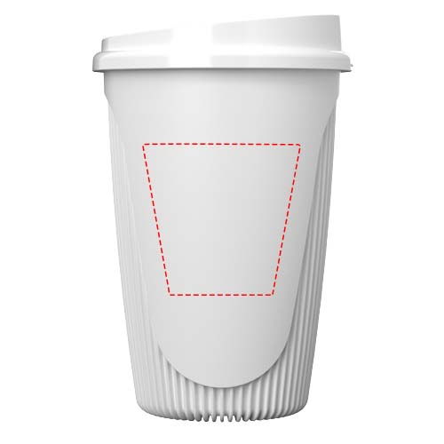 Alto 350 ml klaas on peen ja stiilne üheseinaline jooginõu, millel on isoleerivad servad ohutuks ja mugavaks käsitsemiseks. Sellel on elegantne klõpsuga kaas, millel on märkamatu reljeef, mis võimaldab joogitila leidmist kombataval viisil. Nii kaas kui ka anum on valmistatud täielikult taaskasutatavast plastist. Nautige oma lemmik kuumi jooke nii mugavalt kui ka stiilselt.
