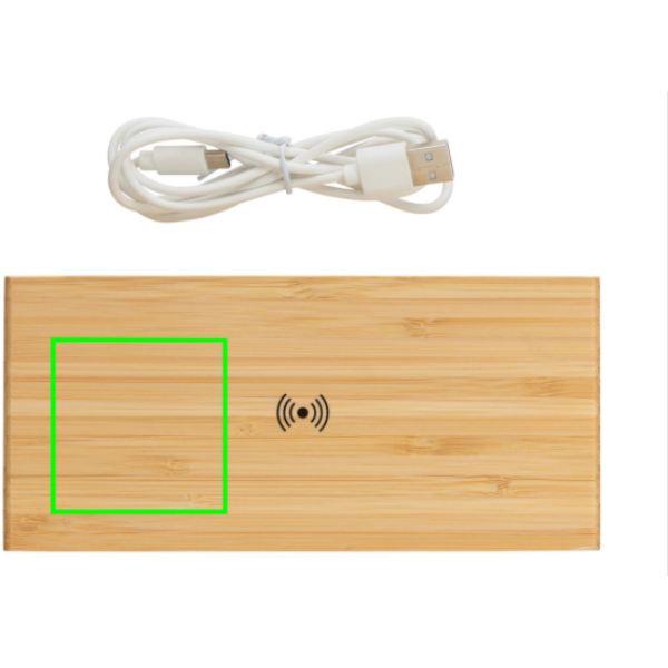 Logo trade firmakingituse pilt: Bambusest äratuskell 5W juhtmevaba laadijaga