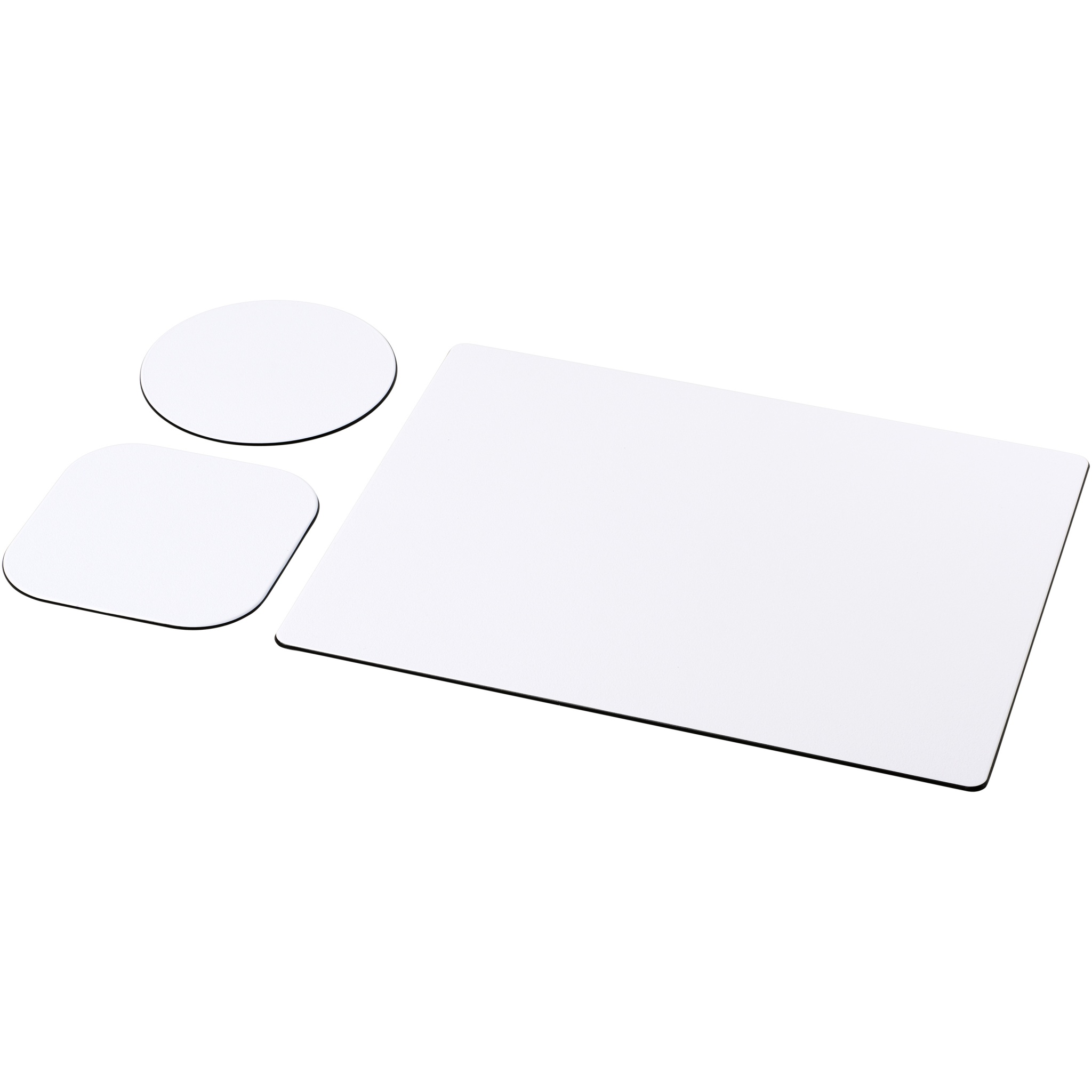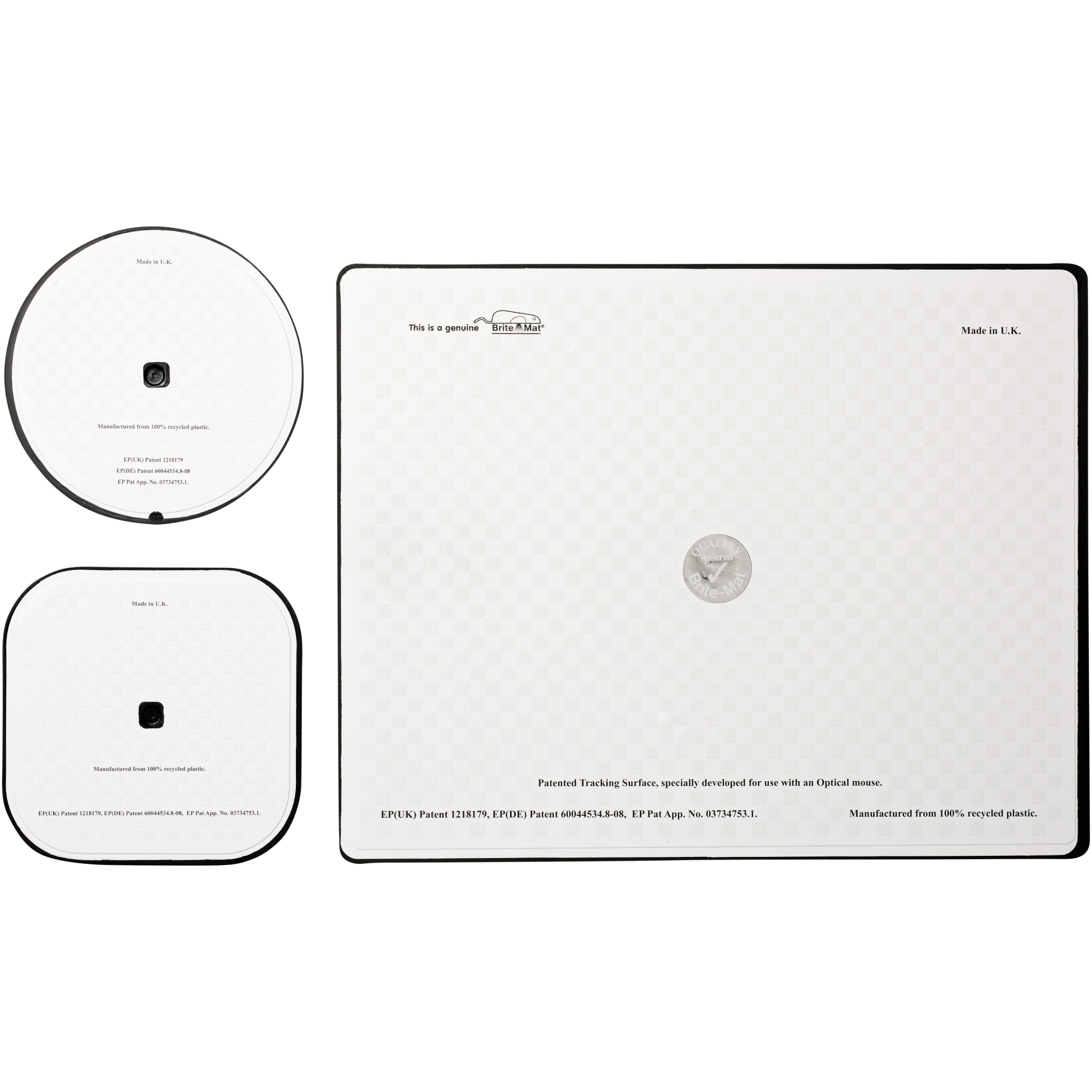 Kaasas Brite-Mati hiirematt ja komplekti sobivaid rannaaluseid. Komplekt koosneb ristkülikukujulisest hiirematist (0,3 x 19 x 21 cm), ruudukujulisest alusalusest (0,3 x 9,5 x 9,5 cm) ja ümarast alusalusest (0,3 x ø9,5 cm).