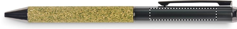Keeratav metallist pastapliiats kangaga korpusel, mis on valmistatud 20% teepaksust, 30% korgist ja 50% polüpuuvillast. Pappkarbis. Sinine tindiga.