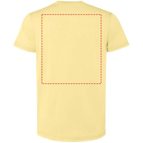 Kollane lühikeste varrukatega meeste T-särk. Happepesu viimistlusega. 1x1 soonikkoes ümara kaelusega. Toon-toonis katteõmblus.