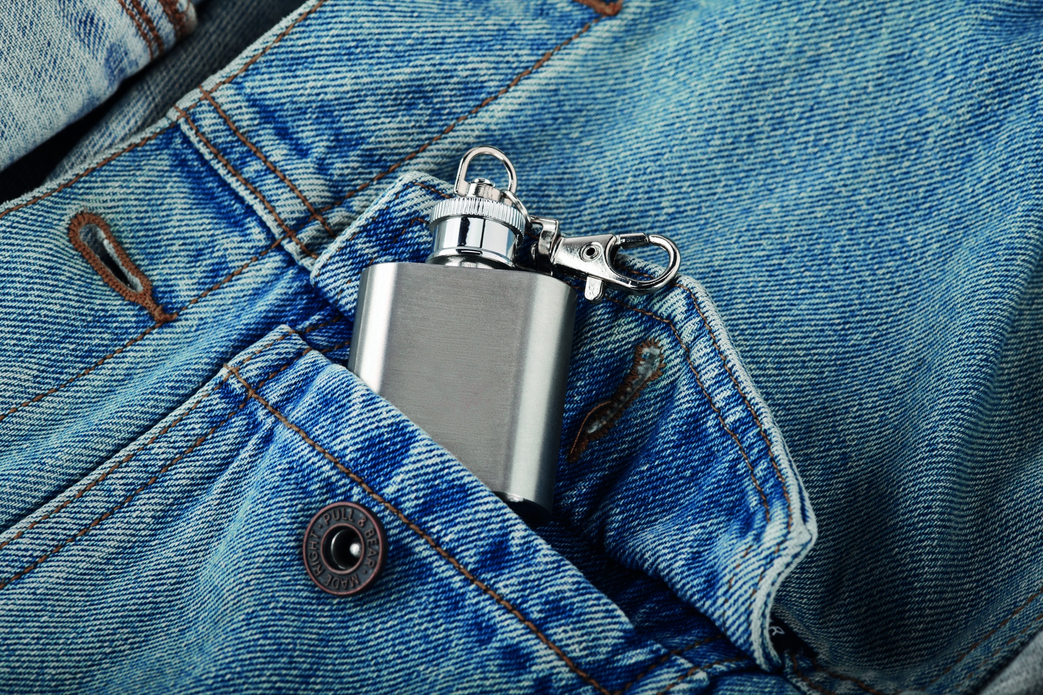 Roostevabast terasest võtmehoidja Hipflask. Mahutavus: 28 ml.