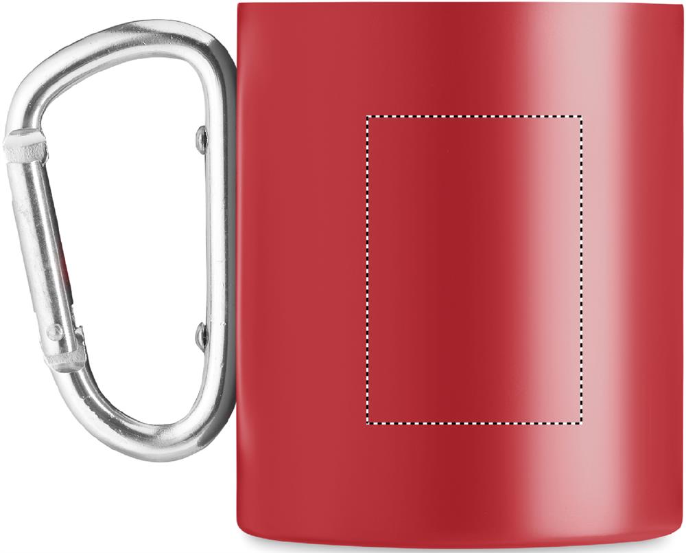 Kaheseinaline roostevabast terasest kruus, karabiiniga sangaga. Mahutavus: 300 ml.