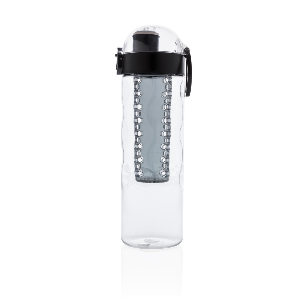 Lisage oma veele mõned tervislikud puuviljamaitsed. See kärgstruktuuri detailidega disainpudel pakub mugavat ühe käega joomist. Vajutage nuppu ja kaas avaneb. Seal on spetsiaalne lukustusmehhanism, mis takistab kasutajatel kogemata nuppu vajutamast. Kaasa arvatud kandesang. See infusioonipudel on valmistatud vastupidavast ja uuenduslikust tritaanmaterjalist. Lõhnatu ja 100% BPA-vaba. Sisu 700ml. Registreeritud disain®
