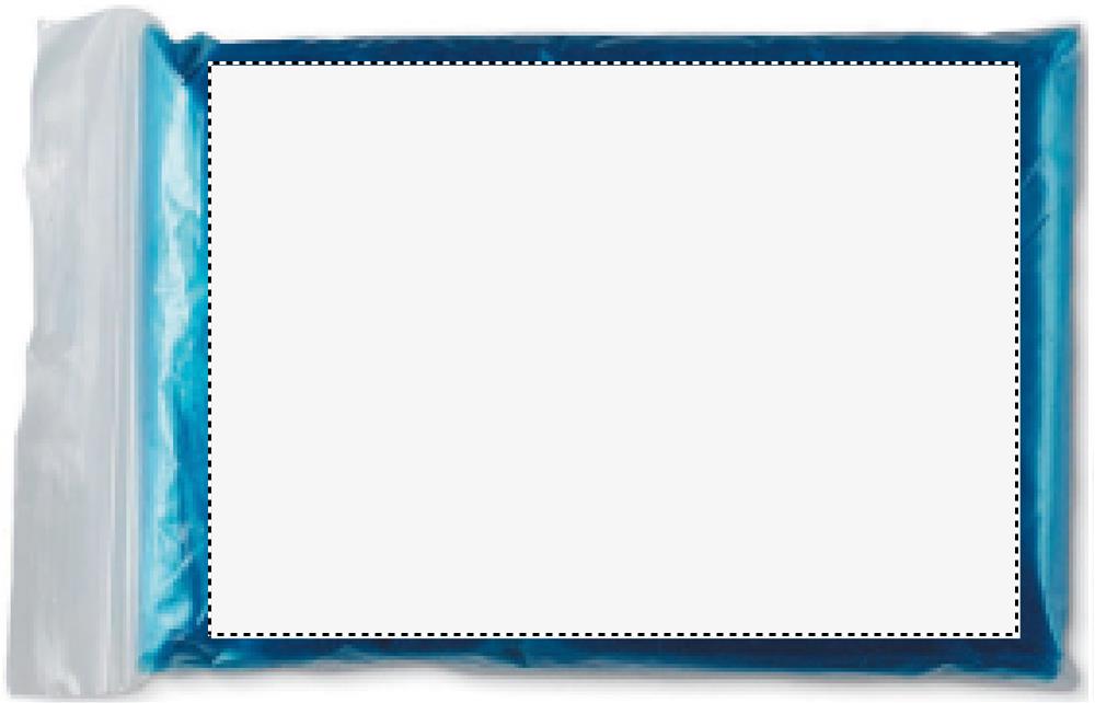 Kokkupandav plastikust pontšo kinnitatud kapuutsiga, pakitud läbipaistvasse polükotti.