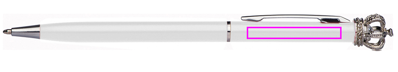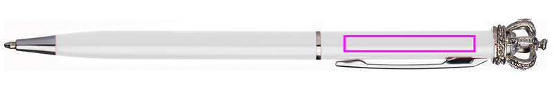 Õhuke metallist pastapliiats sinise kirjaga täidisega. Kroon ja väike klaasist teemant muudavad selle pastaka ainulaadseks. Graveerime teie logo klipist paremale.
