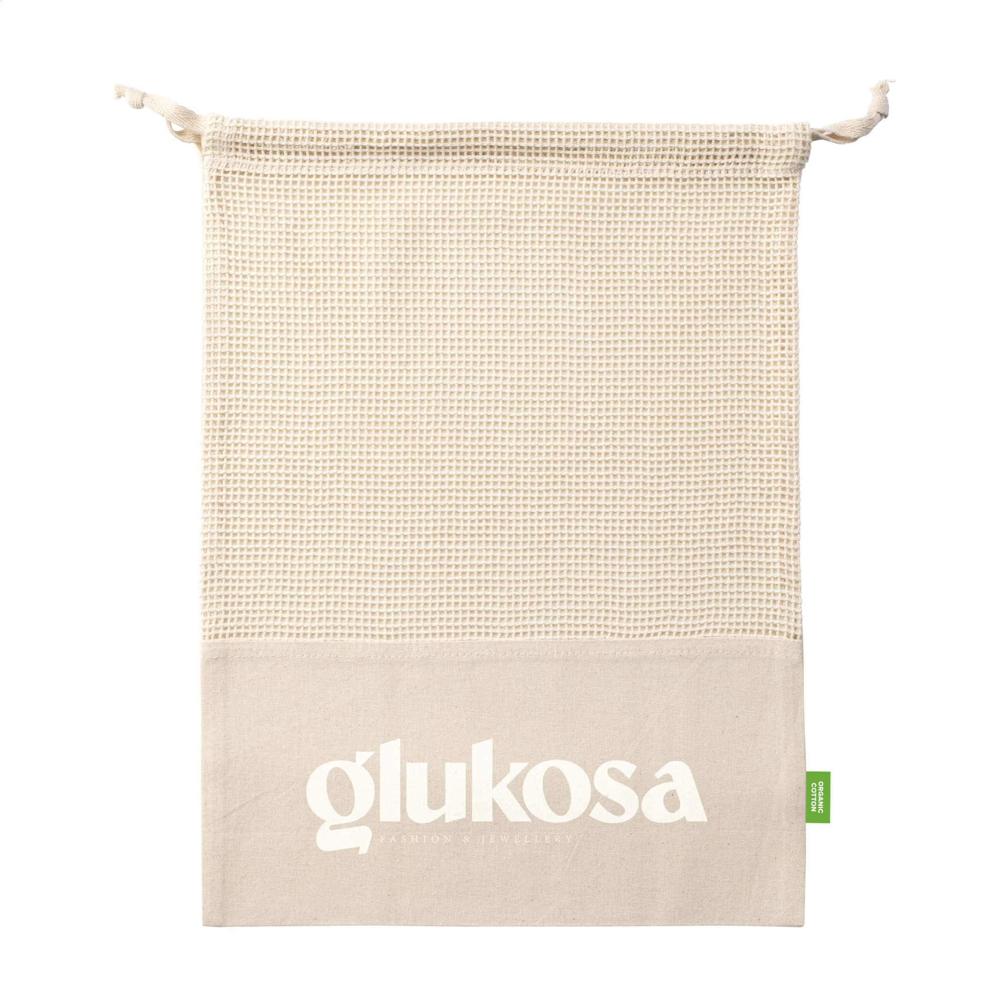 Logo trade firmakingituse pilt: Natura Organic GOTS võrgust puuviljakott (120 g/m²)
