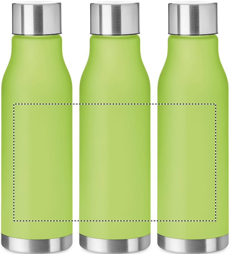 RPET joogipudel kummeeritud viimistlusega (läbipaistev matt) ja roostevabast terasest kork sisemise RPET kaane ja silikoonrõngaga. BPA vaba. Lekkevaba. Mahutavus: 600 ml. Ei sobi gaseeritud jookidele.