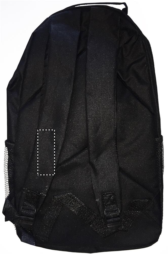 600D polüestrist seljakott värvilise kontrastse pealispinna ja kaunistusnööriga esipaneelil. Võrktaskud mõlemal küljel.