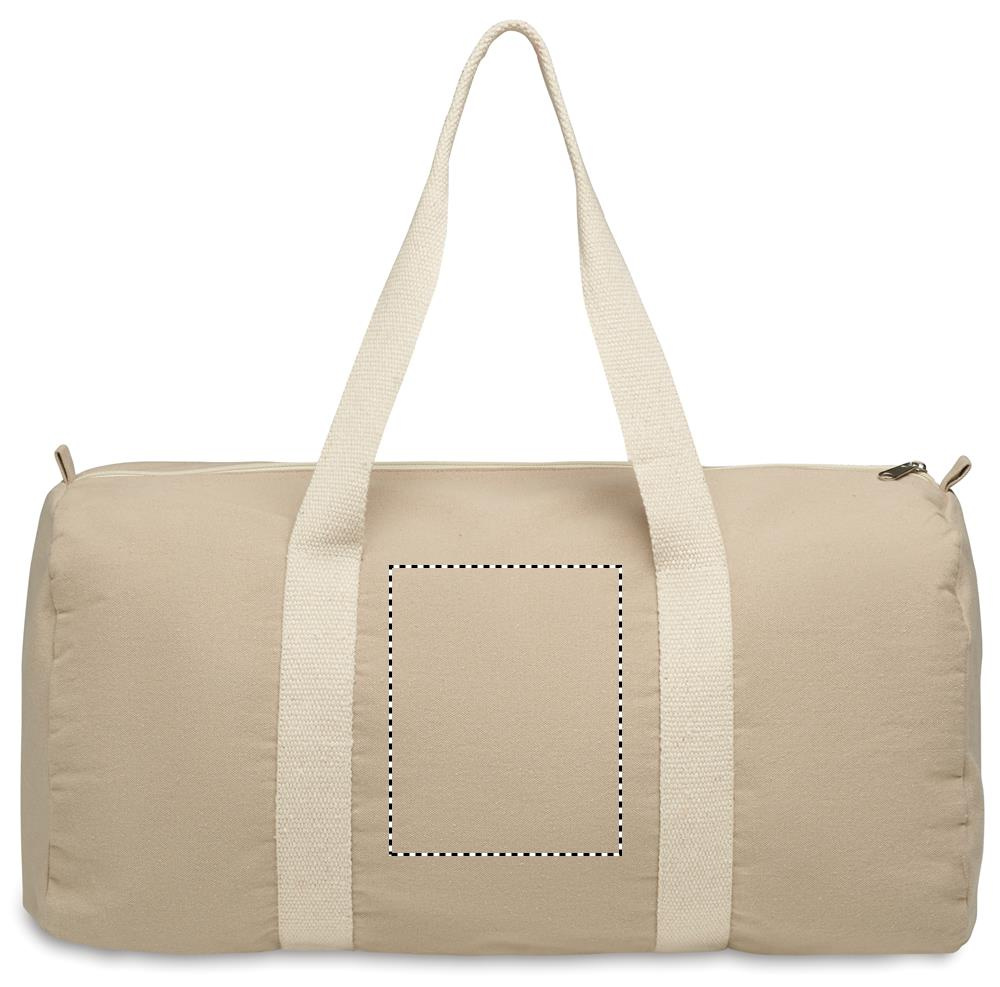 Must pikkade sangadega 320 gr/m² taaskasutatud puuvillast (80%) ja taaskasutatud polüestrist (20%) tõmblukuga küljesahtli ja lukuga sisetaskuga kott, spordi- või reisikott.